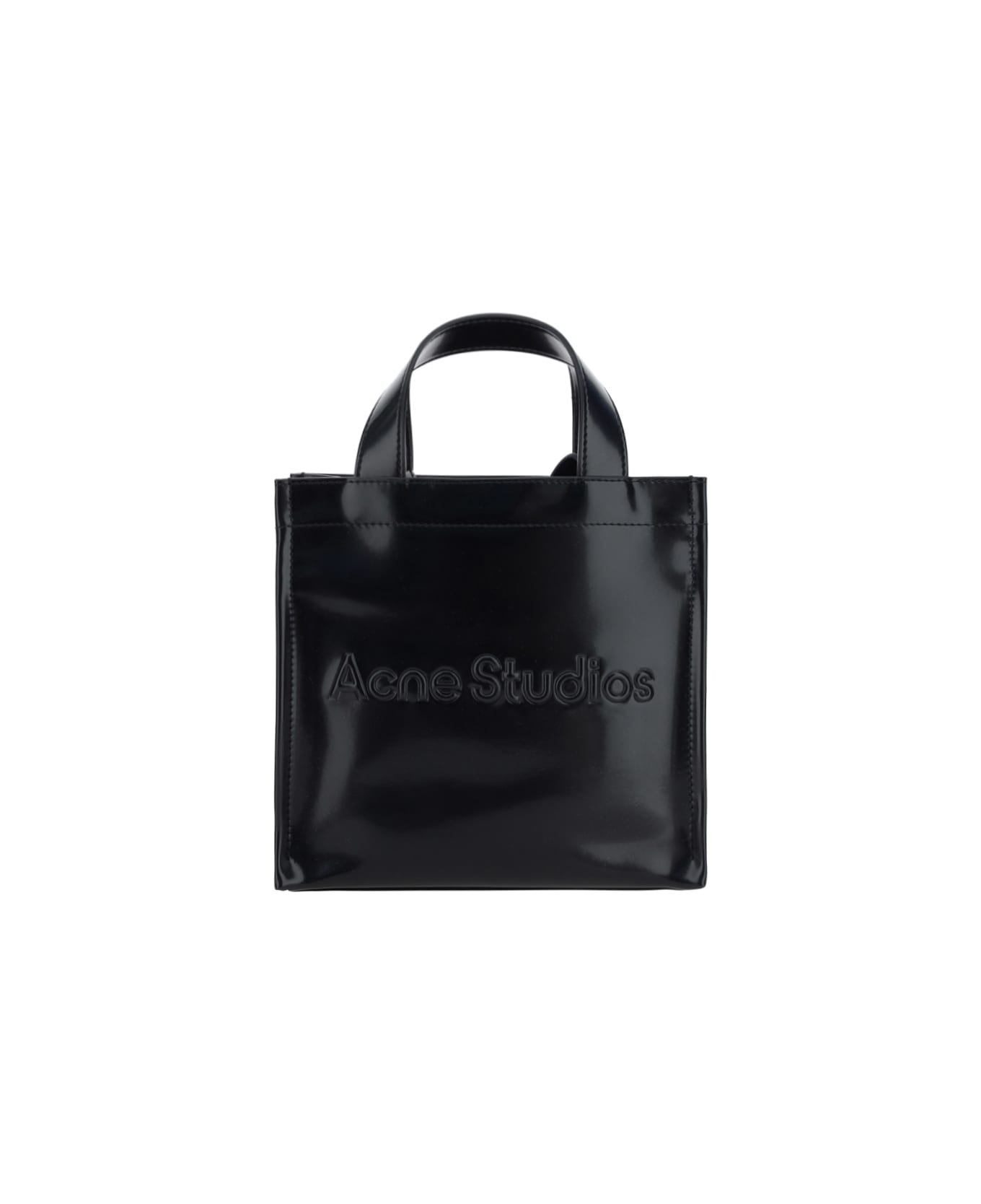 Shopper mini bag by acne studios, double flat handles at the top, iconic brand monogram embossed on the front.
