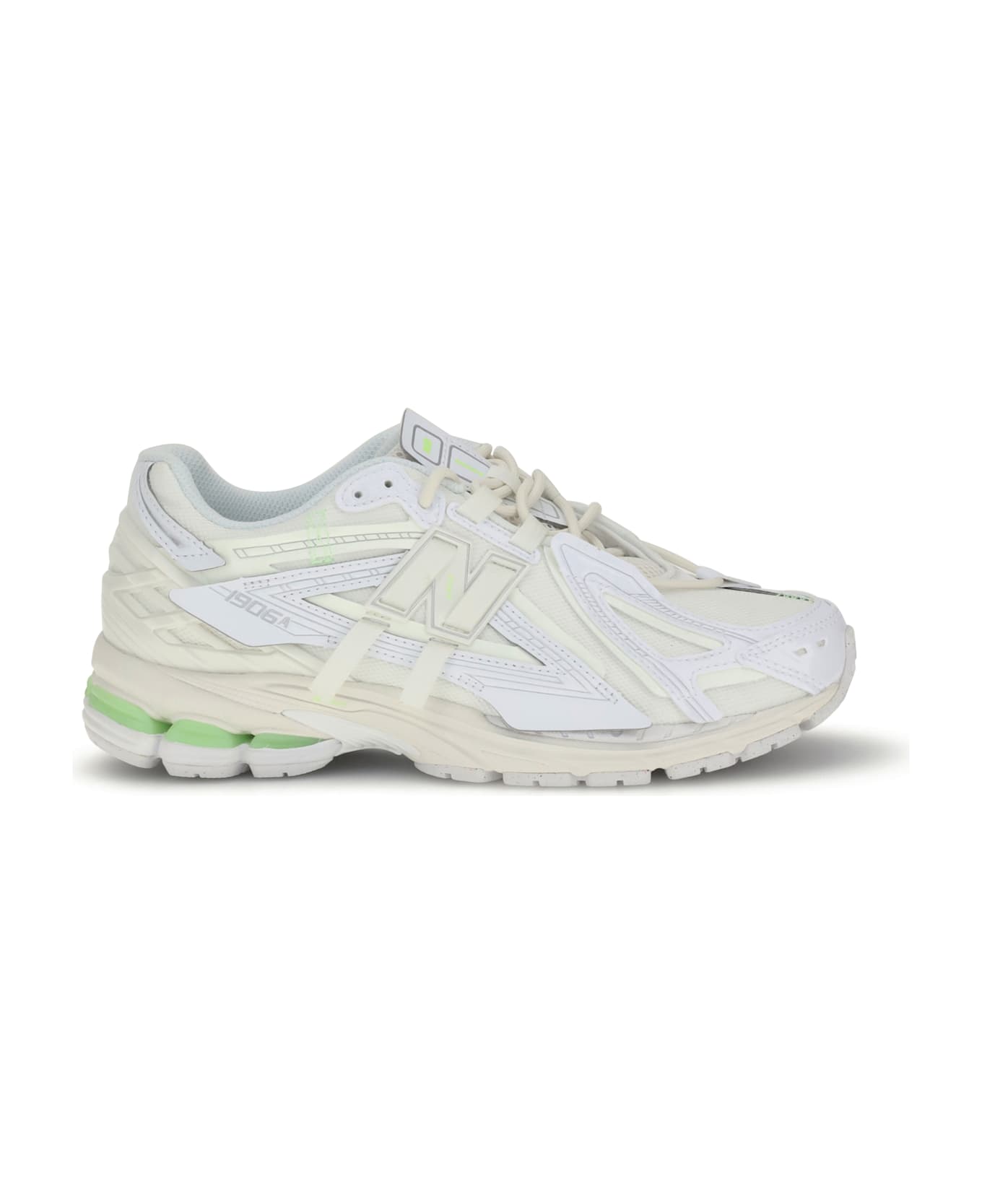 New balance's 1906a sneakers combine contemporary style and functionality. the mesh upper with leather details ensures breathability and durability, while the lace-up closure provides a stable fit. an elongated toe adds a dynamic touch to the design, complemented by a raised rubber outsole that provides cushioning and support. the iconic contrasting monogram on the side panels and logoed tongue define the aesthetic with a distinctive, modern mark.