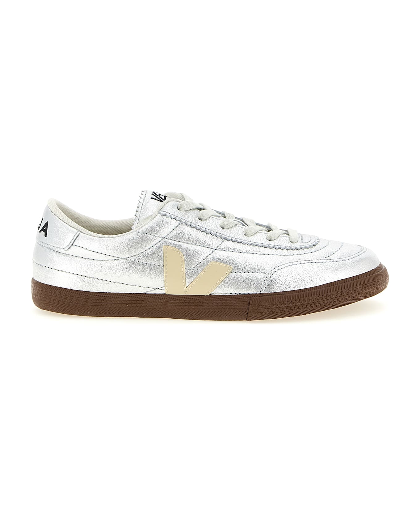 'Panenka' laminated O. T. leather sneakers with contrast Amazonian rubber logo patch on the side, logo embroidery on the heel and tongue, lace-up closure, rubber sole. SUSTAINABLE: O. T. (Organic Traced) leather comes from 100% certified organic farms in Uruguay.