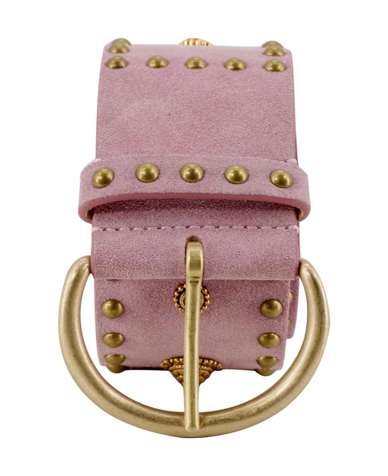 Alessia Zamattio women's leather belt, pink color, adjustable buckle closure, gold metal buckle, stud applications.