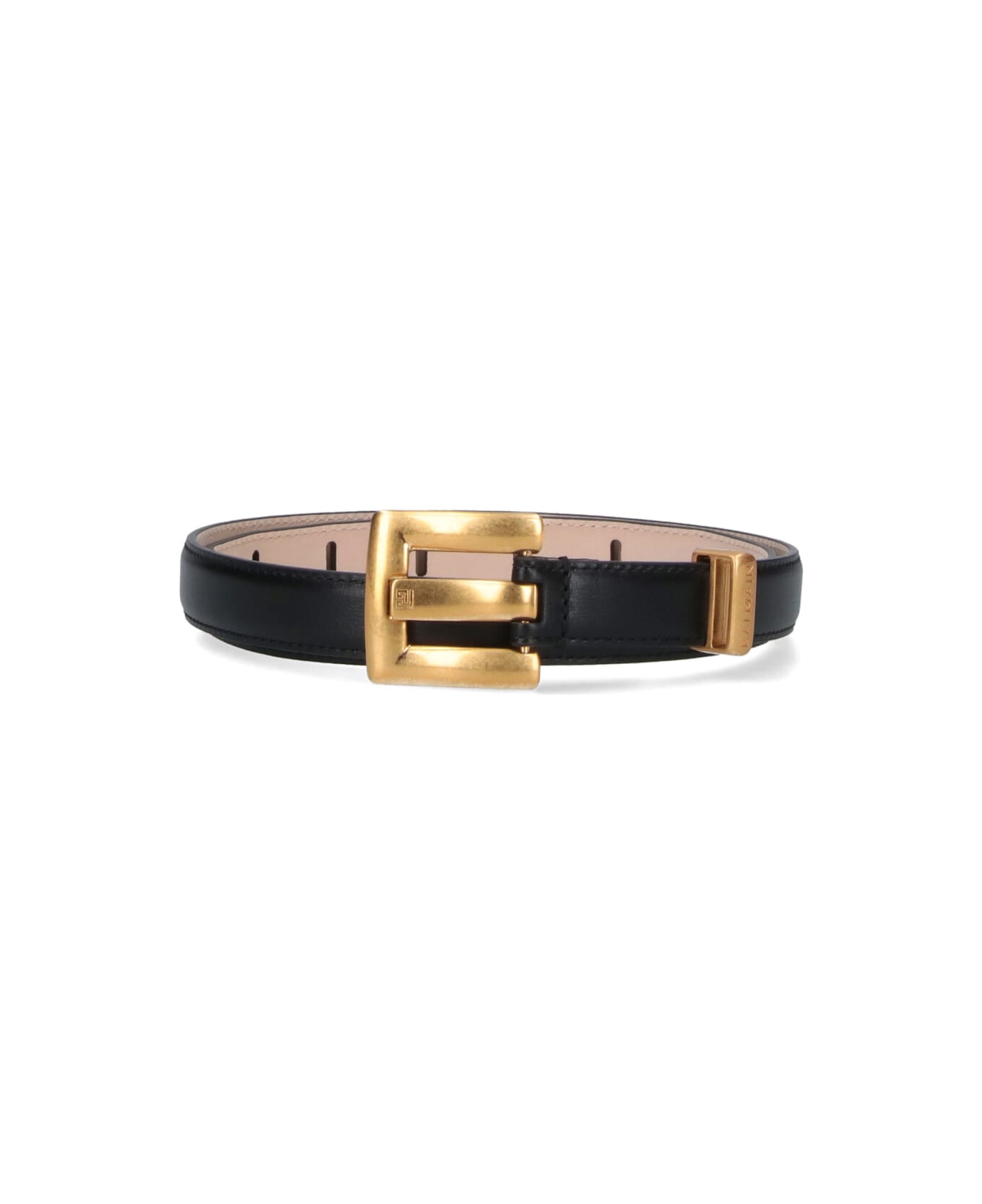 Balmain Anthem belt in black calf leather with gold metal buckle, adjustable.