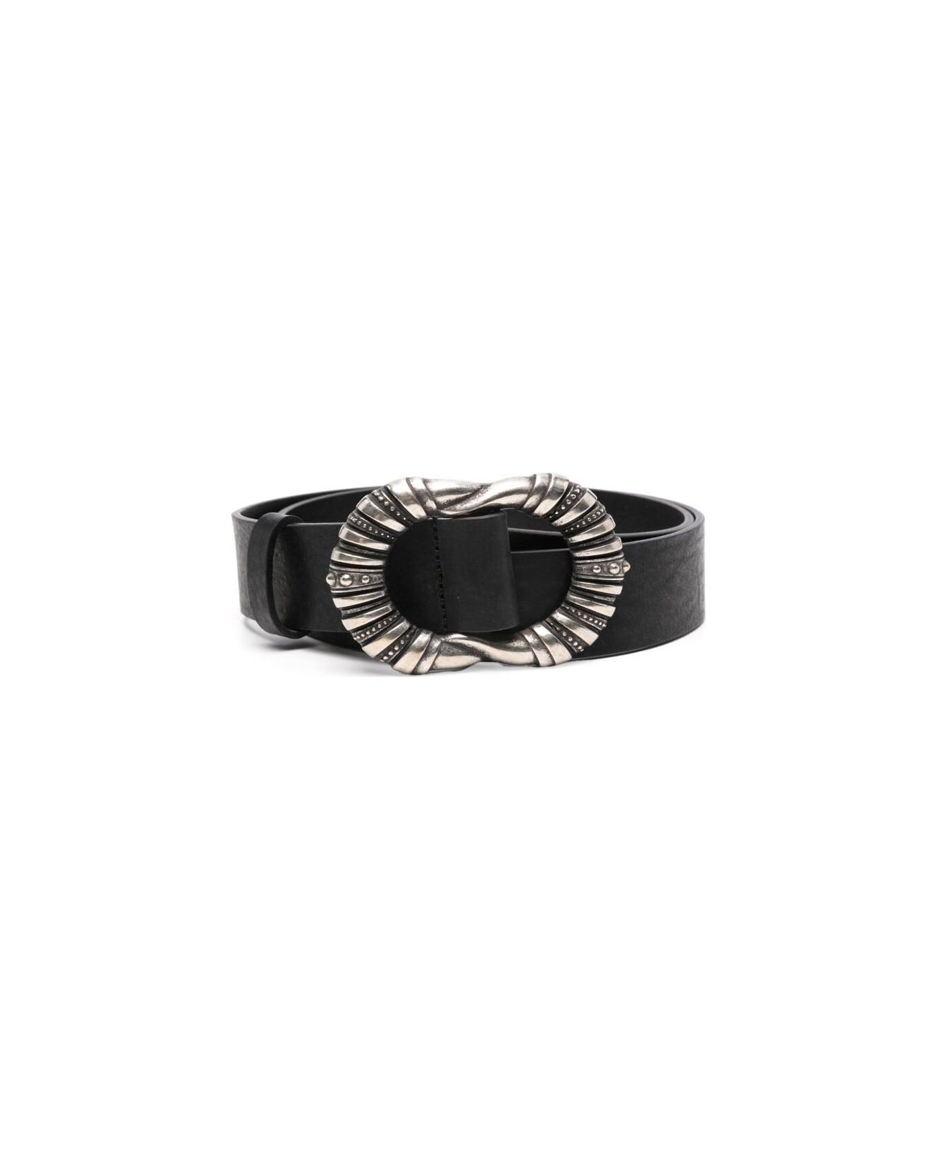 black calf leather decorative buckle detail pin-buckle fastening punched holes adjustable fit silver-tone hardware