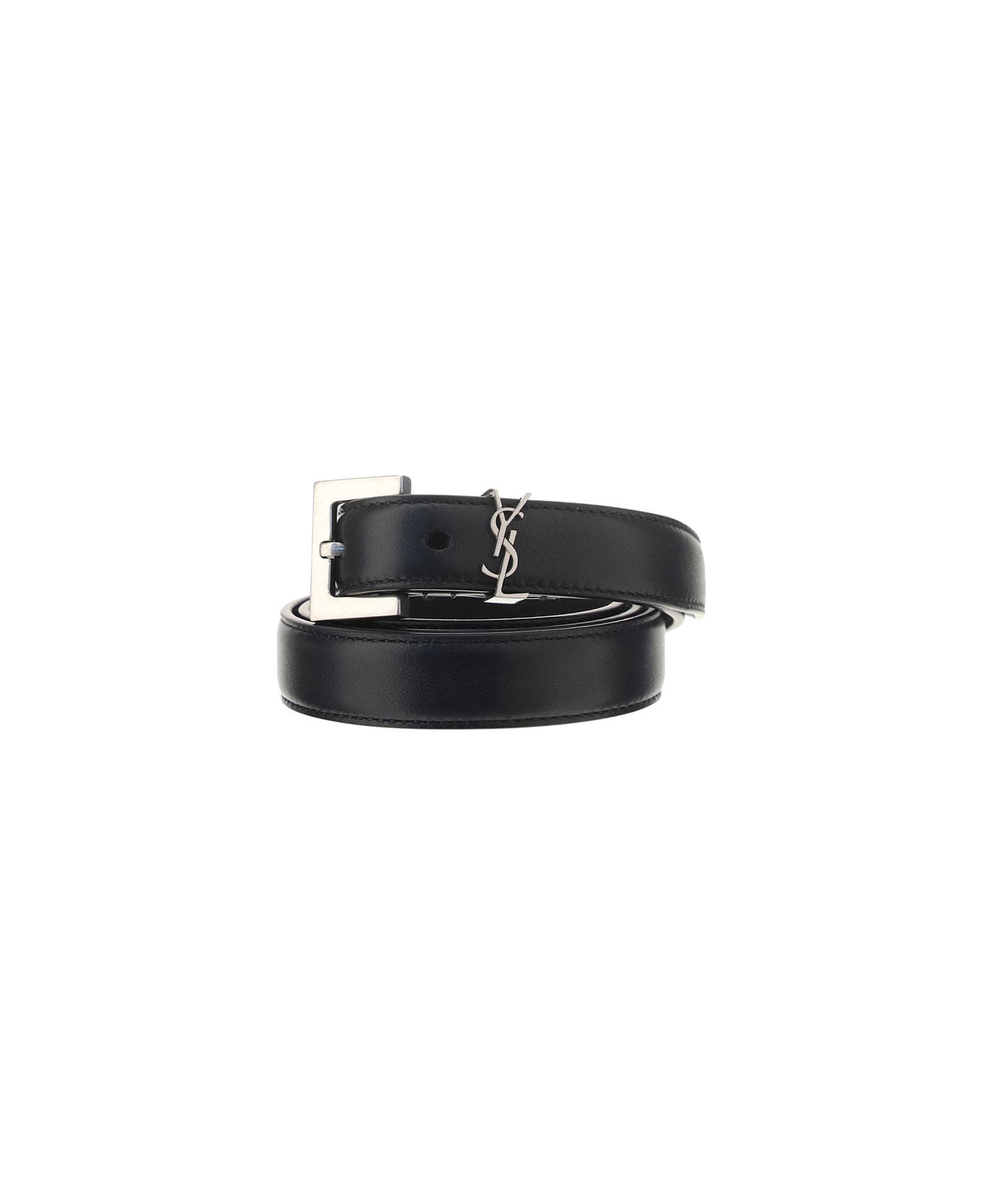 Calfskin belt by saint laurent, metallic rectangular buckle, iconic brand monogram applied to the front in relief. thickness: 2 cm. Composition: 100% % Calf Leather Bos Taurus