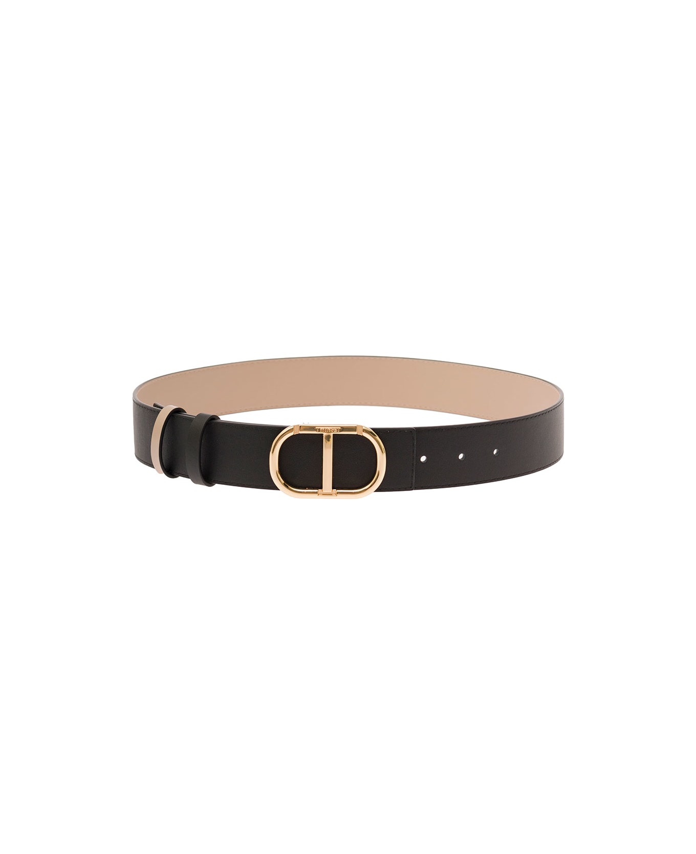 Black And Beige Reversible Belt With Logo Buckle In Smooth Leather Woman