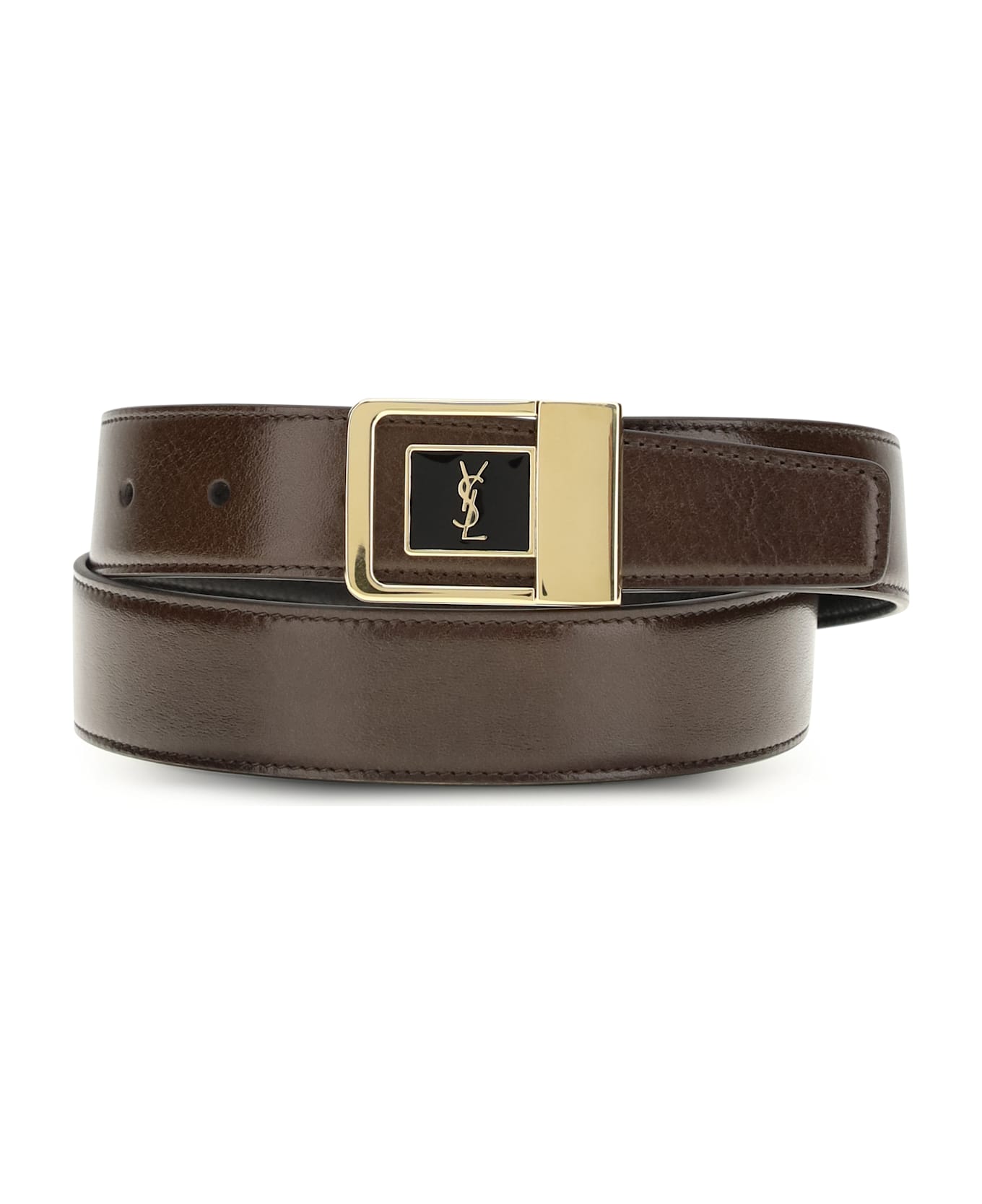 The la 66 belt in smooth leather by saint laurent is an elegant and contemporary accessory, featuring a square enamel buckle adorned with the cassandre motif. the gold-tone hardware and adjustable buckle closure complete the design, combining refined style and functionality. Composition: 100% % Calf Leather Bos Taurus