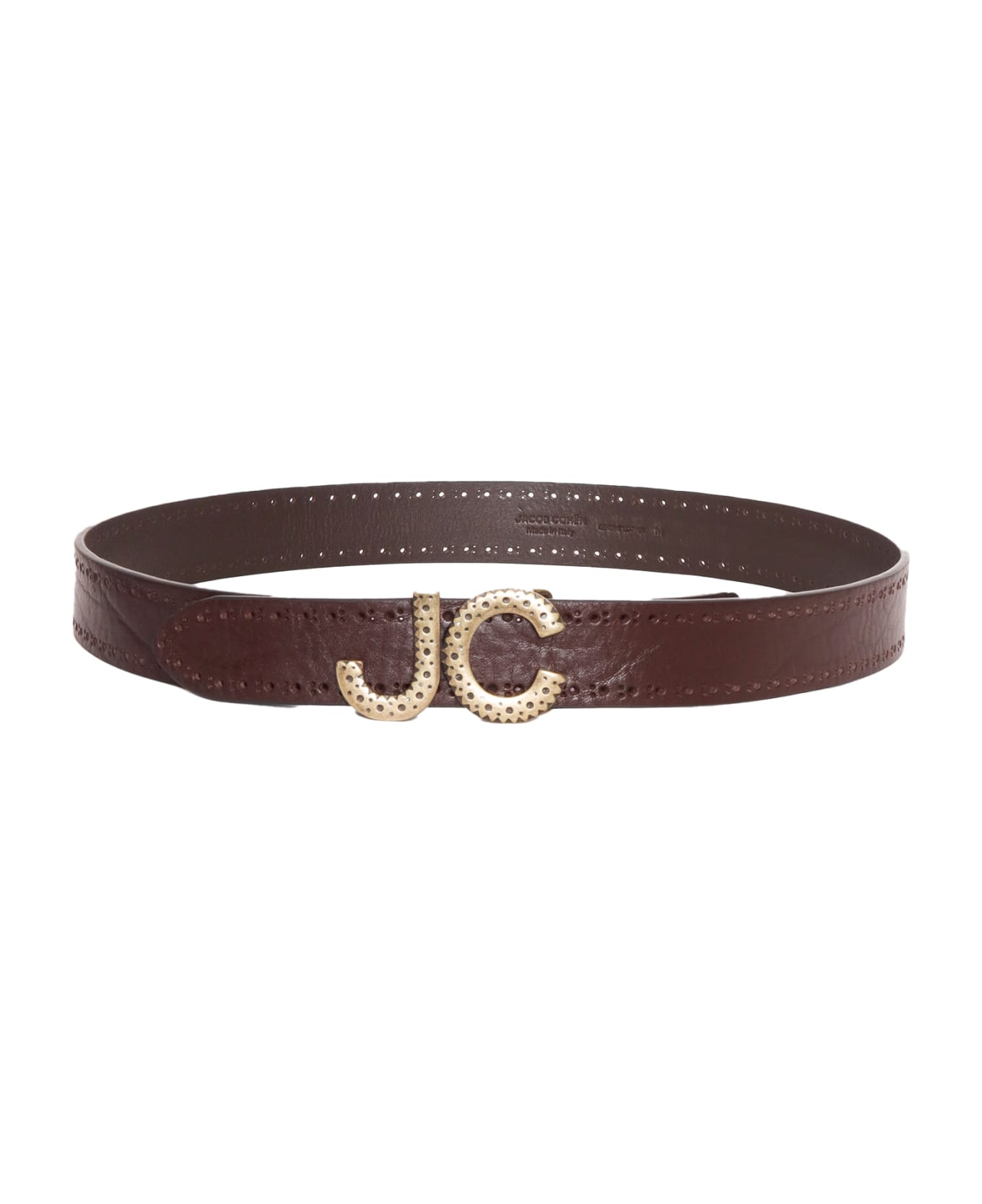 Perforated leather belt, burnished metal logo buckle Composition: 100% L7