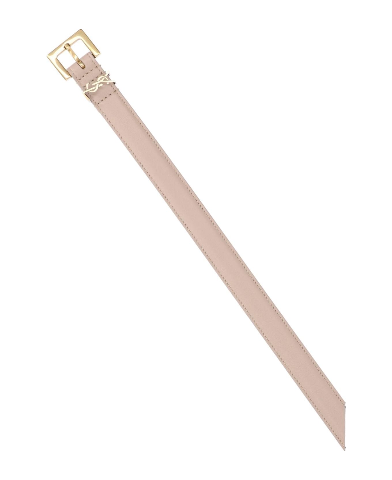 Saint Laurent Monogram Logo Belt, leather, beige, square golden metal buckle, metal loop with monogram logo. composition: 100% leather size and fit: height 2 cm