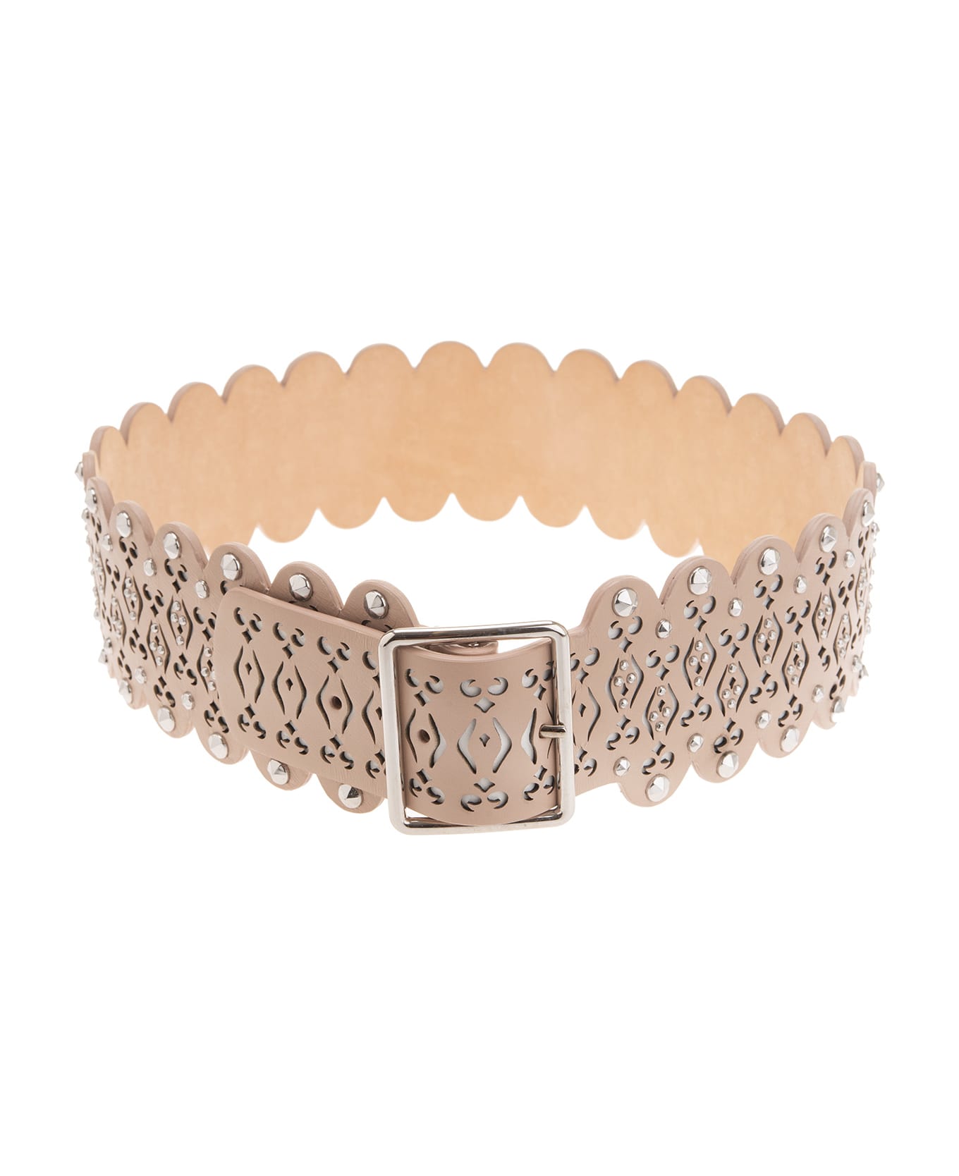 Pinkish Beige Micro-perforated Leather Belt With Micro Studs