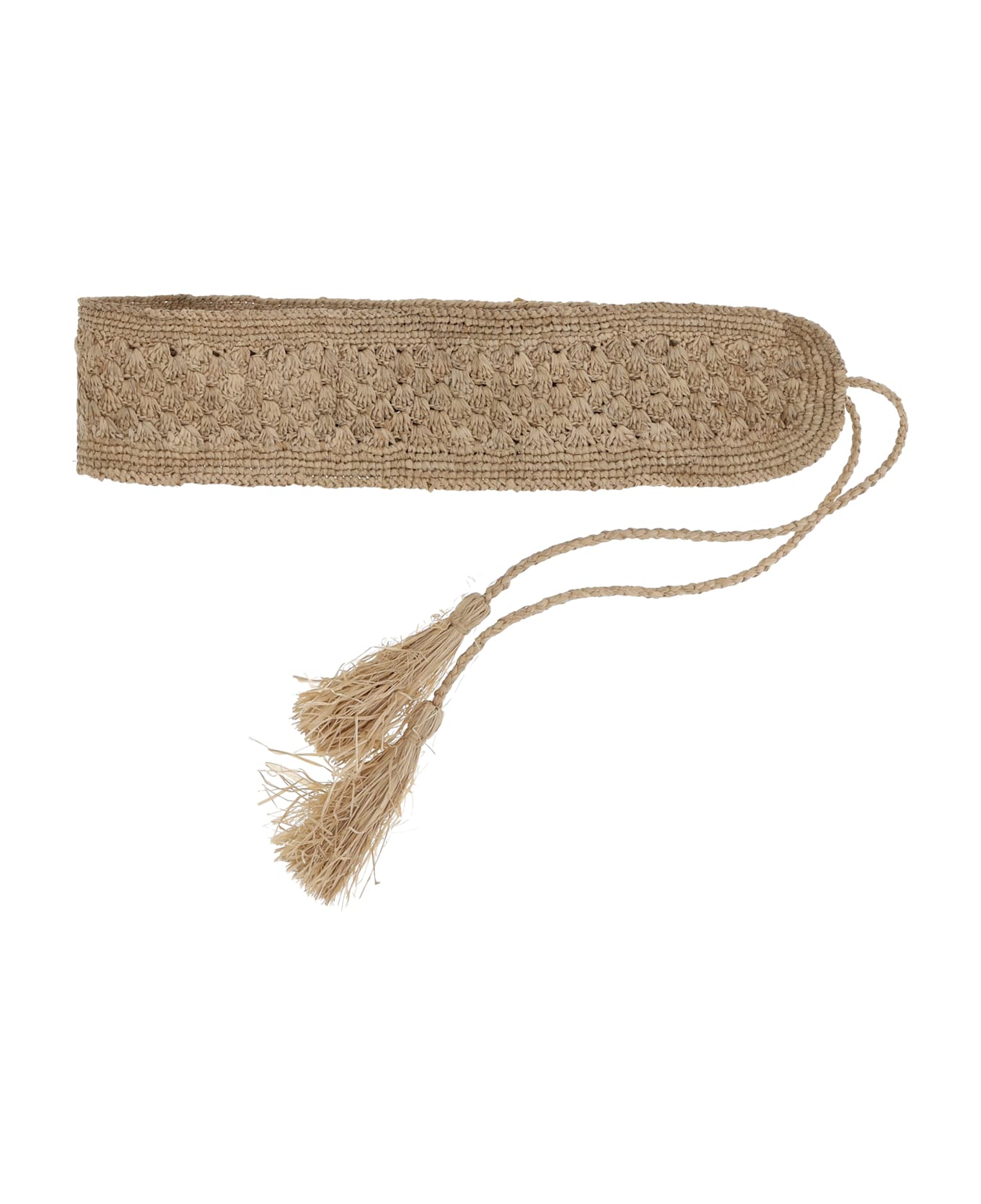 Ibeliv's raffia bika belt is an elegant and natural accessory, crafted with a delicate crochet work that enhances the female figure. its width lends a touch of sophisticated simplicity, while the woven lace closure adds a distinctive, handcrafted detail. perfect for enhancing the summer wardrobe, this belt adds a natural and chic touch to any outfit. Composition: 100% % Raffia