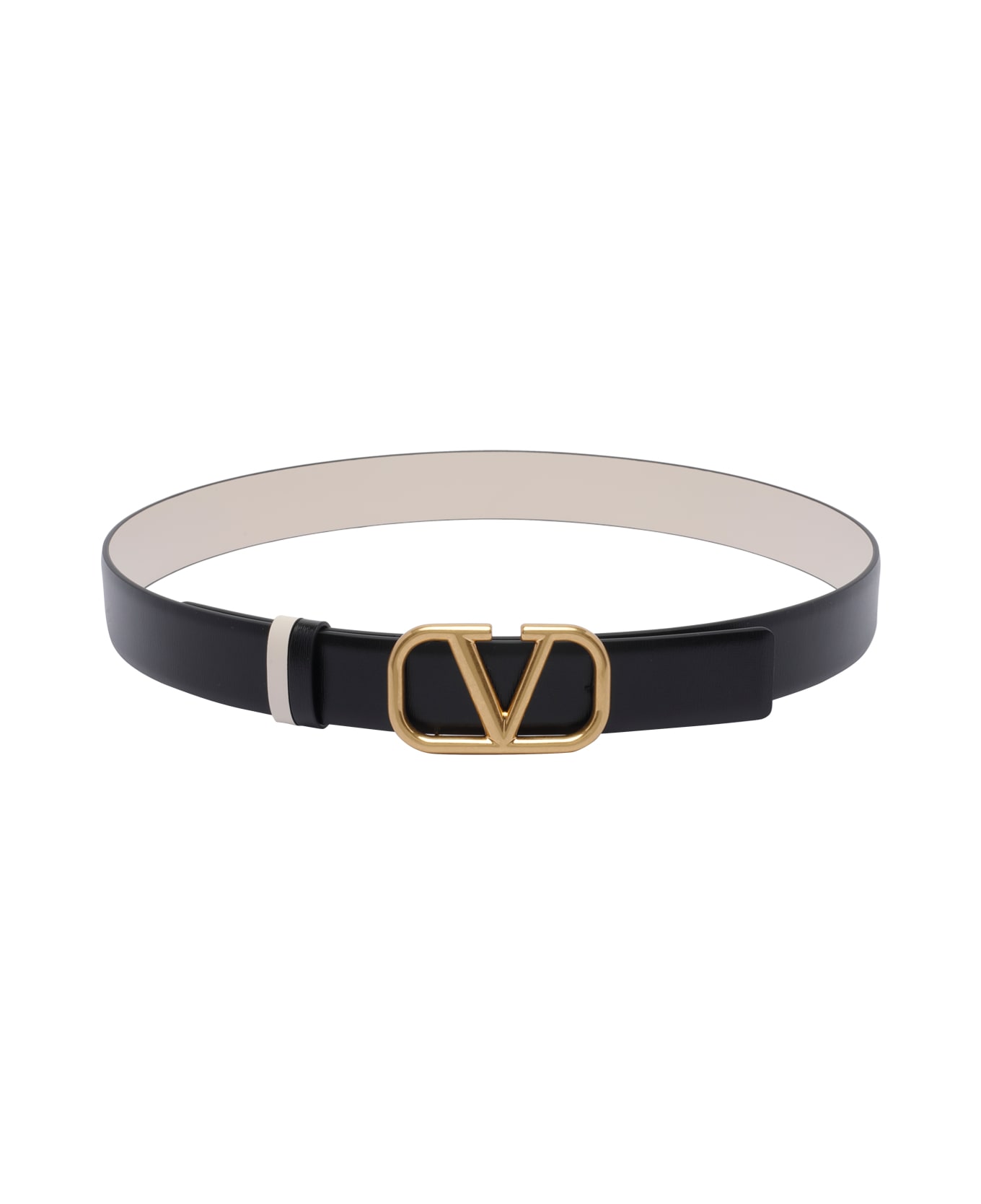 Reversible Vlogo signature belt, reversibile black ivory, frontal logo Composition: 100% Calf Leather
