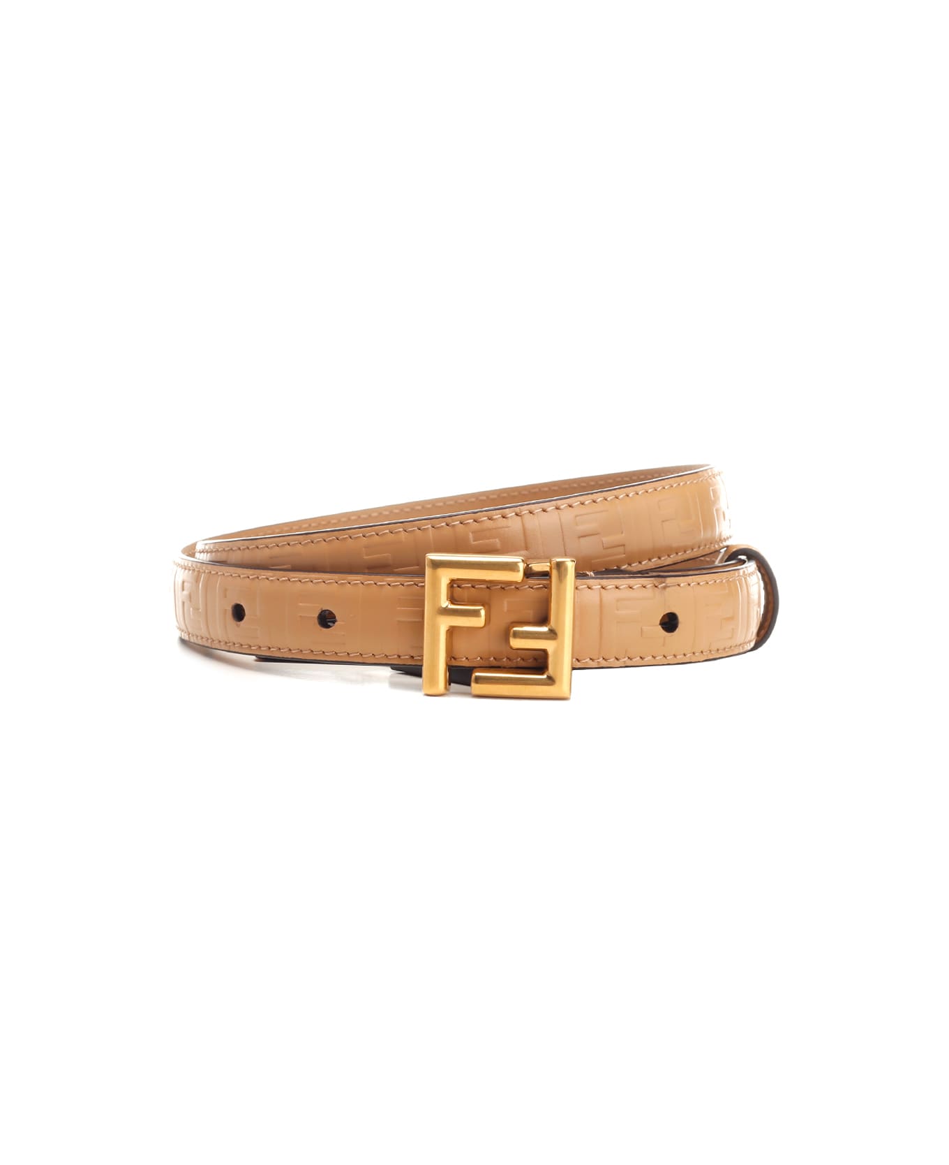 Camel beige calfskin belt with embossed FF logo and gold buckle from Fendi. Composition: COR675 100%VIT+Interno:100%VIT