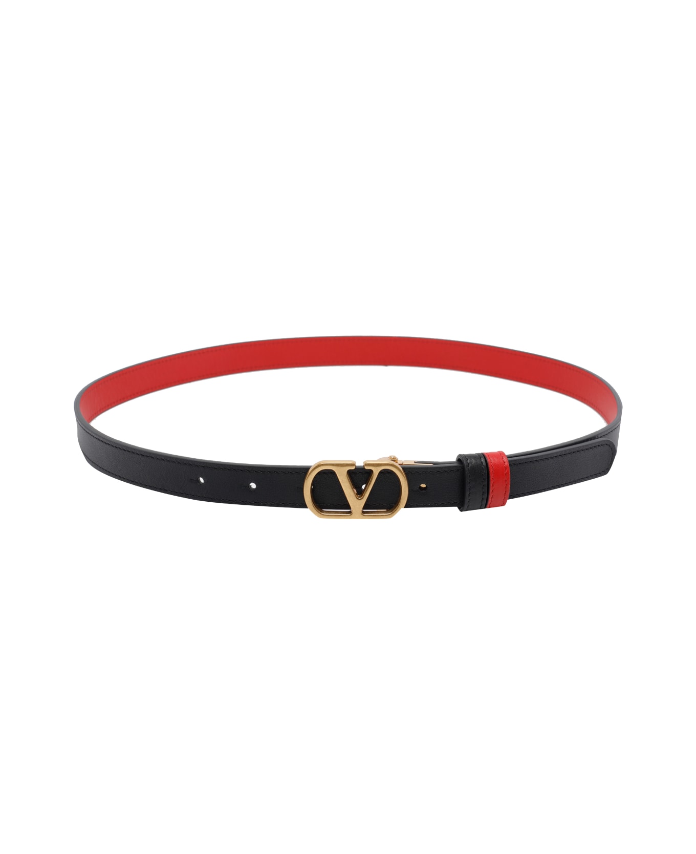 Valentino Garavani black and red Vlogo signature reversible belt, frontal buckle closure Composition: 100% Calf Leather