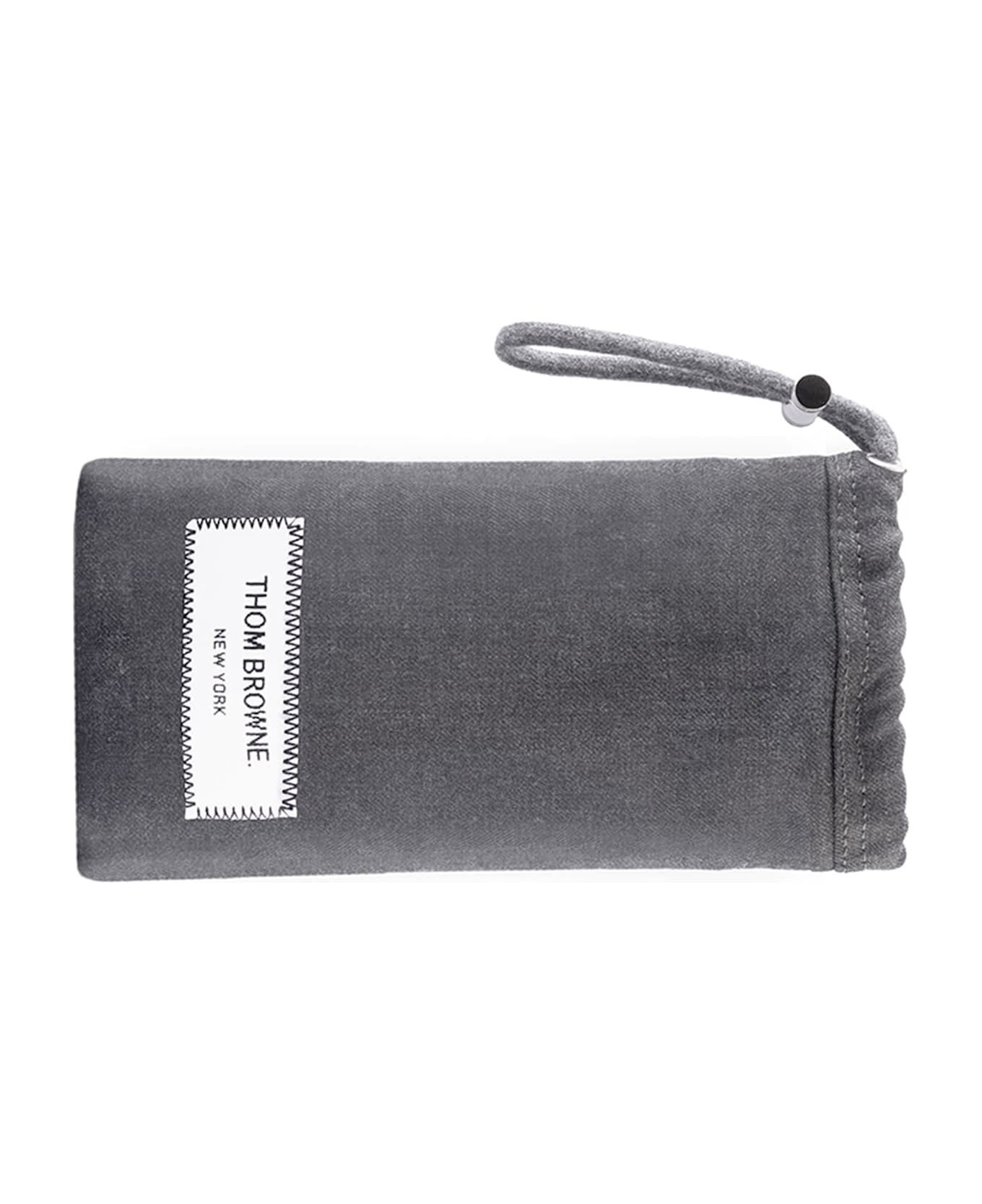 Thom Browne SOFT TWILL EYEWEAR CASE - MED GREY (UAC059A-00626-035) is an elegant eyewear case crafted in Italy. It features grey super 120's twill made of 100% wool, cotton drawstring with silver hardware, color-contrast cotton patch with Thom Browne logo.