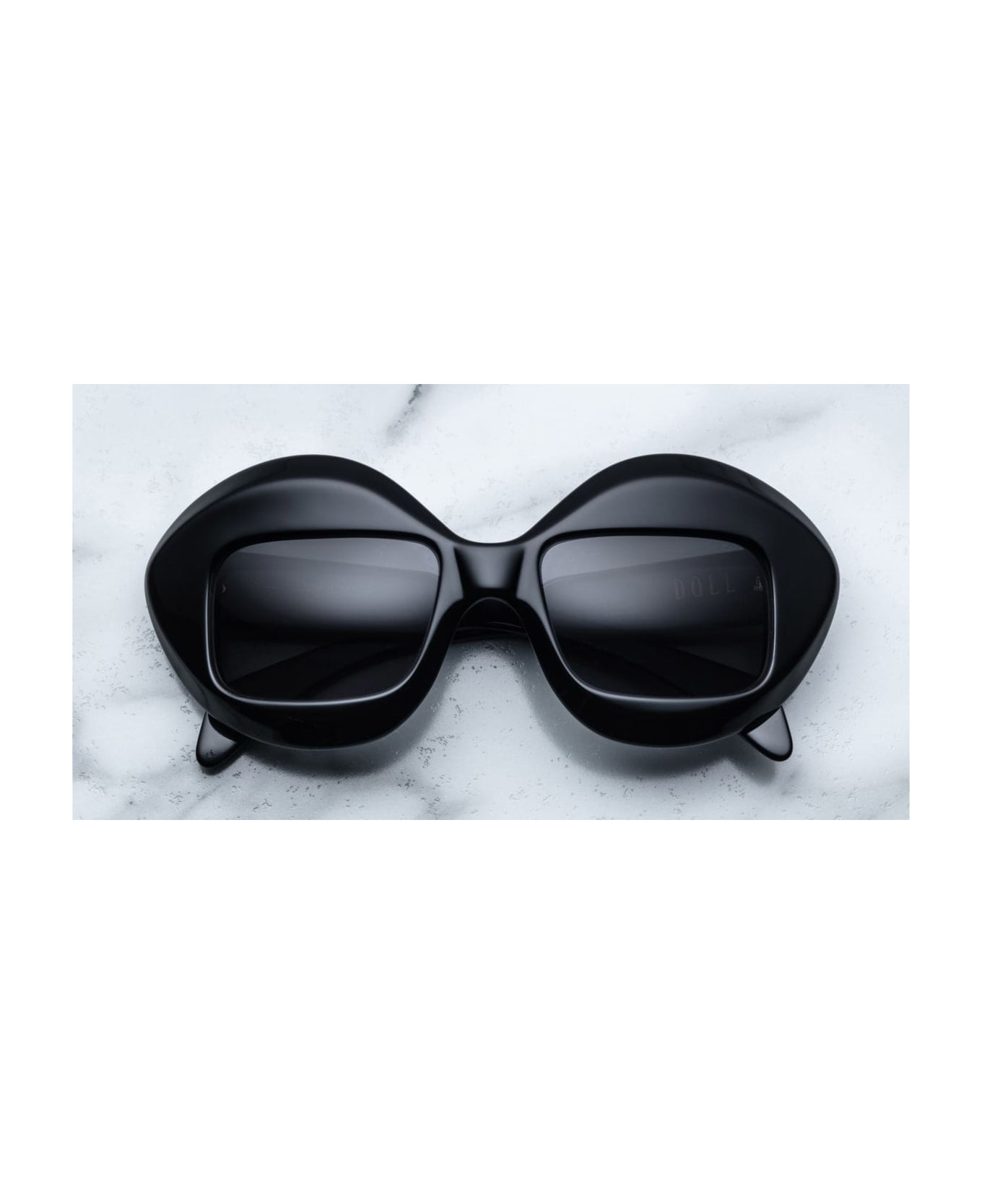 Jacques Marie Mage DOLL - BLACK (JMMDL-88) are round sunglasses with playful volumes inspired by the '70s, made in Japan. They feature 8mm black acetate structure, dark gold hardware, tension-secured 7 barrel hinge, and 6 base CR39 jet black lens with 100% UV protection.
