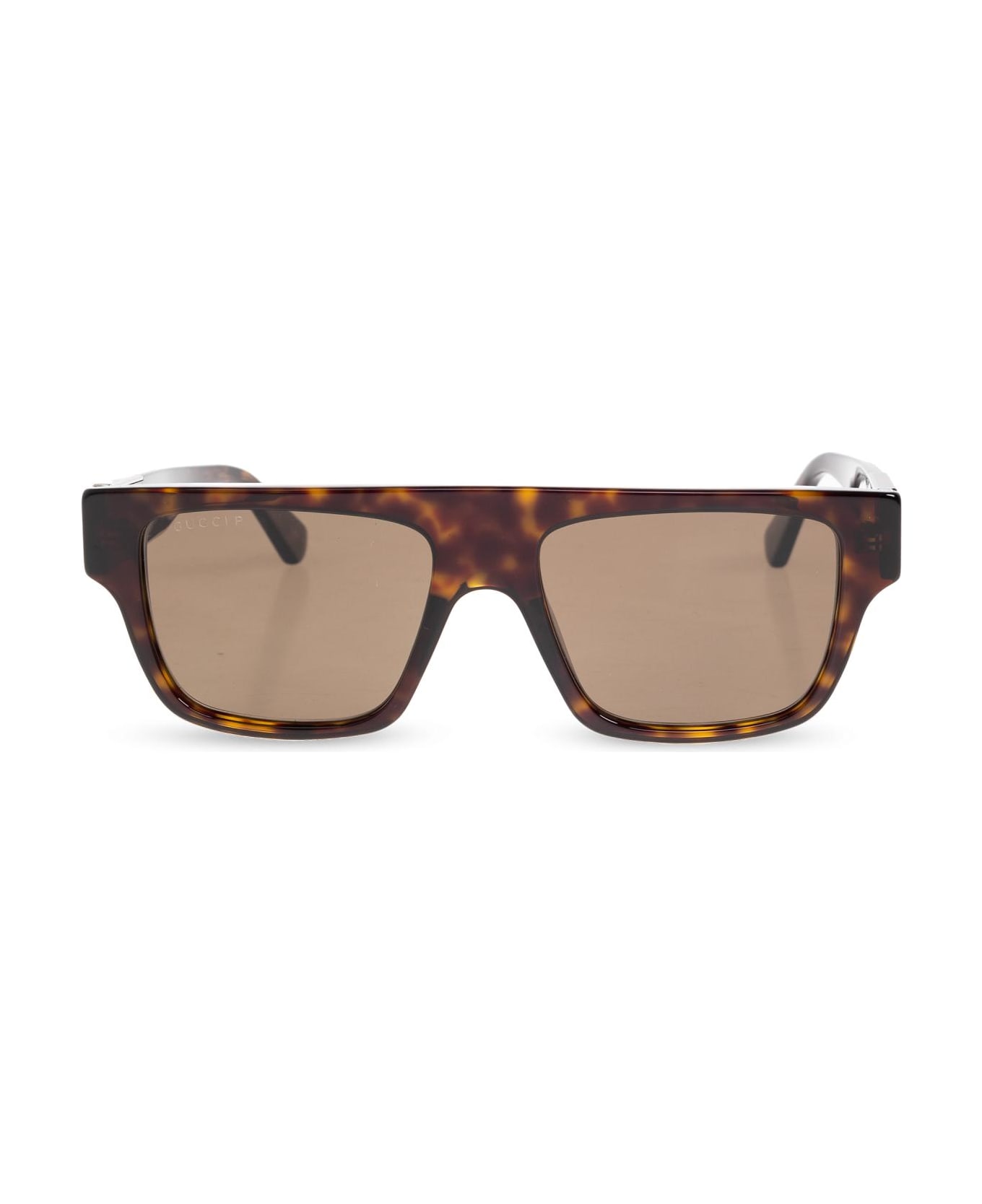 Discover the allure of Gucci Sunglasses, where timeless heritage meets contemporary artistry. These rectangular frames, gently rounded at the corners, exude a bold yet sophisticated presence. The wide temples are adorned with Gucci's distinctive metal embellishment engraved with the iconic logo and detailed in the maison's signature green and red providing a subtle nod to the brand's storied legacy. Crafted from premium acetate, the frames feature a lustrous, robust finish and the classic Havanna pattern in refined brown tones, radiating modern luxury. The softly tinted brown lenses perfectly complement the frames, offering both superior style and gentle protection. Designed under the creative vision of Sabato De Sarno, these sunglasses reflect the finesse of Italian craftsmanship and enduring design sensibility that defines the world of Gucci. Why choose this product? Exclusive Gucci craftsmanship and designer heritage Luxurious Havanna-patterned acetate Iconic logo with signature brand detailing Modern, statement-making silhouette Superior comfort and style for any occasion