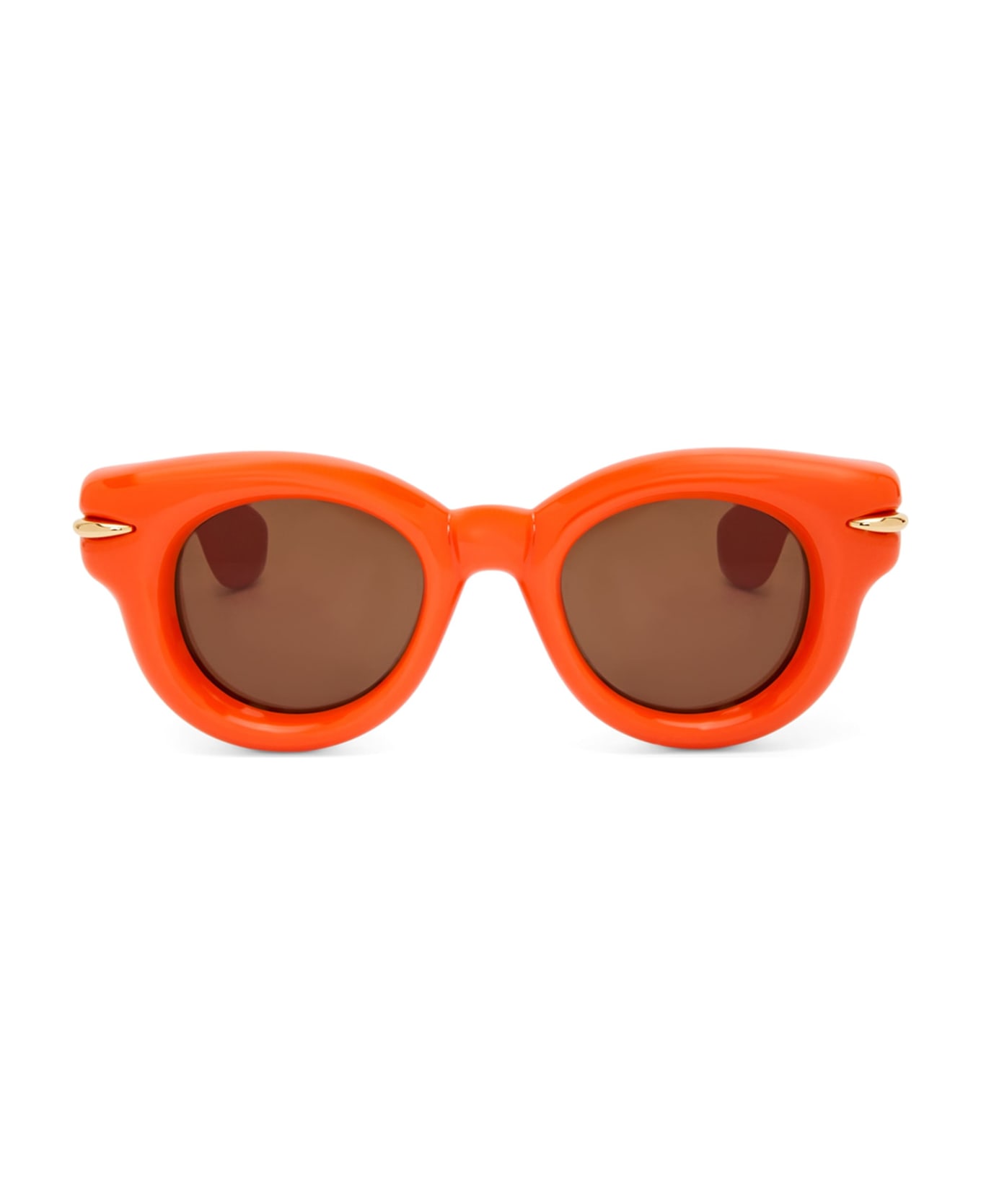 Loewe INFLATED ROUND - ORANGE (LW40118I4642E) are round sunglasses with an inflated effect, mede in Italy. They feature orange nylon frame with gold embellishment, Loewe logo on temples, and brown lens with 100% UV/UB protection.
