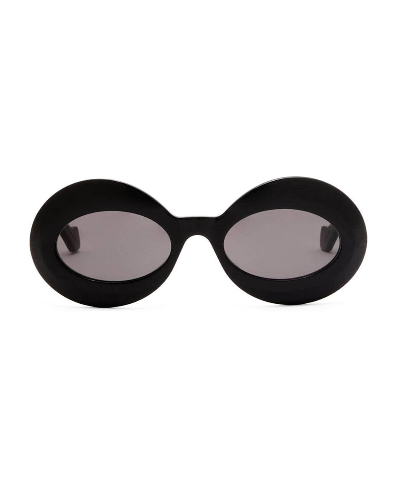 Loewe LW40091I - BLACK (LW40091I-01A) are round sunglasses made in Italy. They feature oversize black acetate frame, LOEWE metal anagram on temples, and grey lens with 100% UVA/UVB protection.