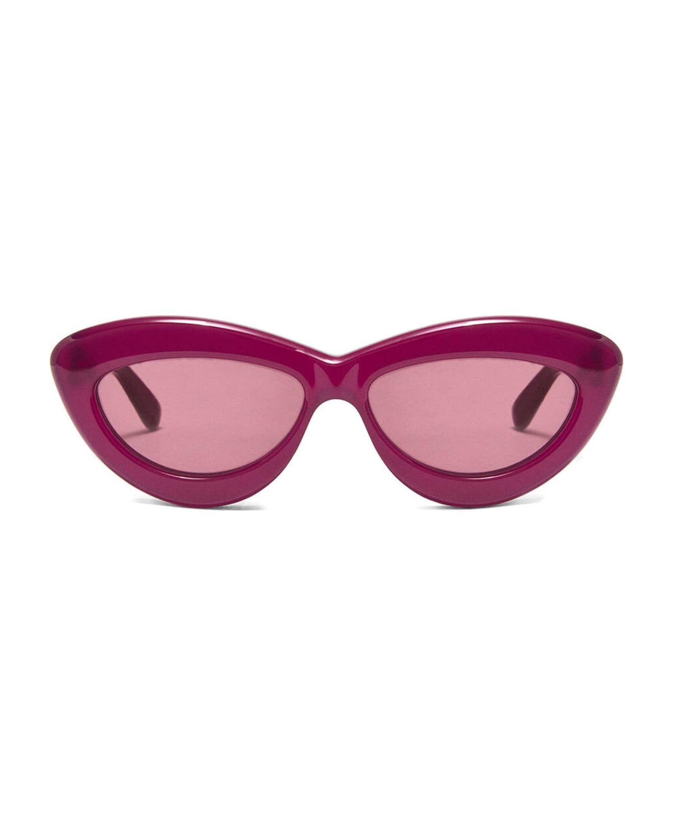 Loewe LW40096I - CHERRY (LW40096I-75Y) are cat-eye sunglasses made in Italy. They feature cherry acetate frame, Loewe signature on temples, and purple lens with 100% UVA/UVB protection.