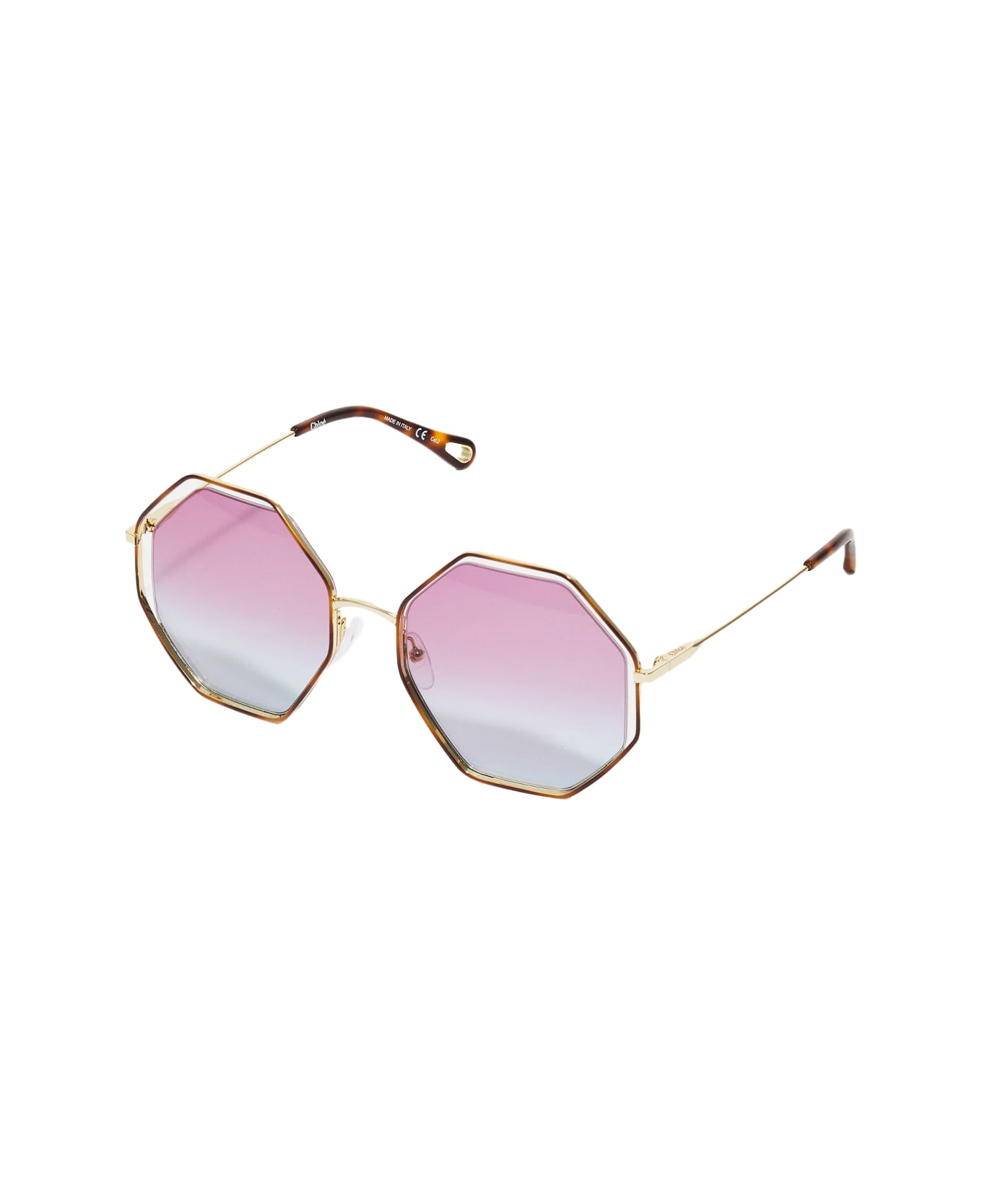 A compact version of the eponymous model, Poppy Petite octagonal sunglasses for women by Chloé boast a 1970s-inspired gold and havana frame and pink gradient floating lenses. The original design reflects a carefree style, while the slim frame and floating lenses bring a sense of lightness. The havana finish that outlines the floating lenses, matching the temple tips, delicately contrasts the sumptuous gold metal. The temple tips of these women's sunglasses feature a teardrop-shaped opening, compatible with Chloé's eyewear jewellery. 100% UVA and UVB protection. Adjustable nose pads. Snap-on hinges. Prepared for fitting corrective lenses. Filter category: 2. Chloé logo engraved on top left temple. Iconic Chloé element on the temple tips: metal embellished teardrop opening. Sunglasses supplied with case and lens cleaning cloth.