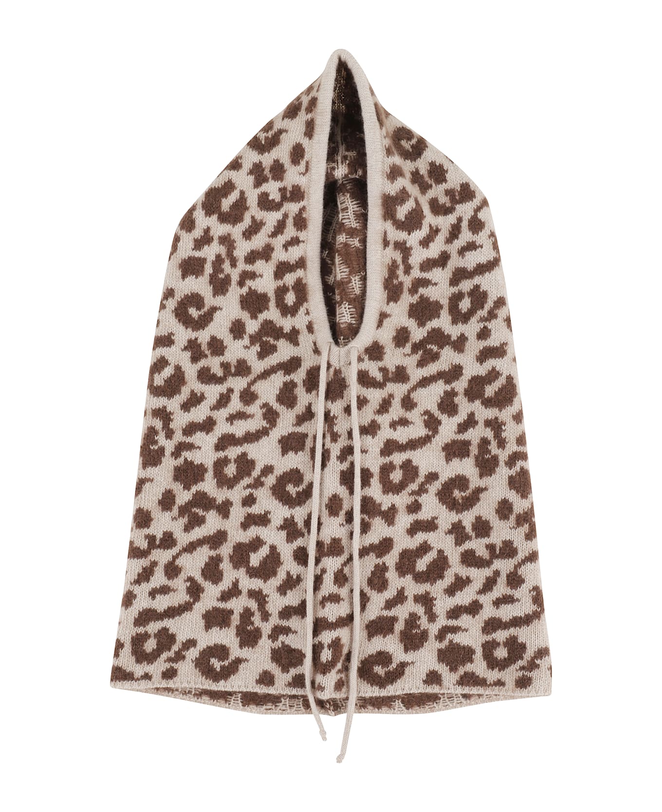 Balaklava - Federica Tosi - Beige and dark brown color - Wool blend fabric with spotted print - Drawstring closure