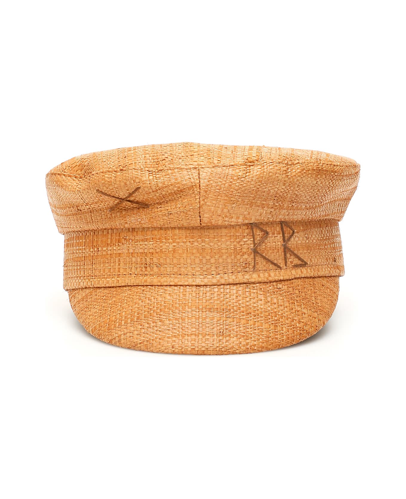 Baker Boy hat by Ruslan Baginskiy in woven straw with RB monogram embroidery and straw-covered rigid visor. Cotton lining. Composition: 100% paglia
