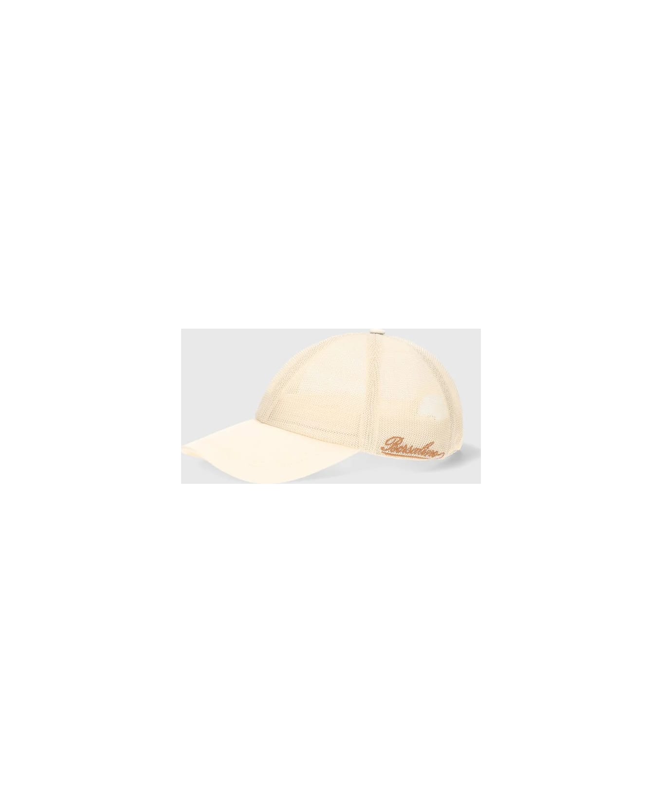 The Baseball Cap in mesh fabric with a solid fabric visor is unlined and enriched by decorative Borsalino embroidery on the left side. Velcro closure is covered in leather. Composition: 80% Nylon;, 20% Cotton