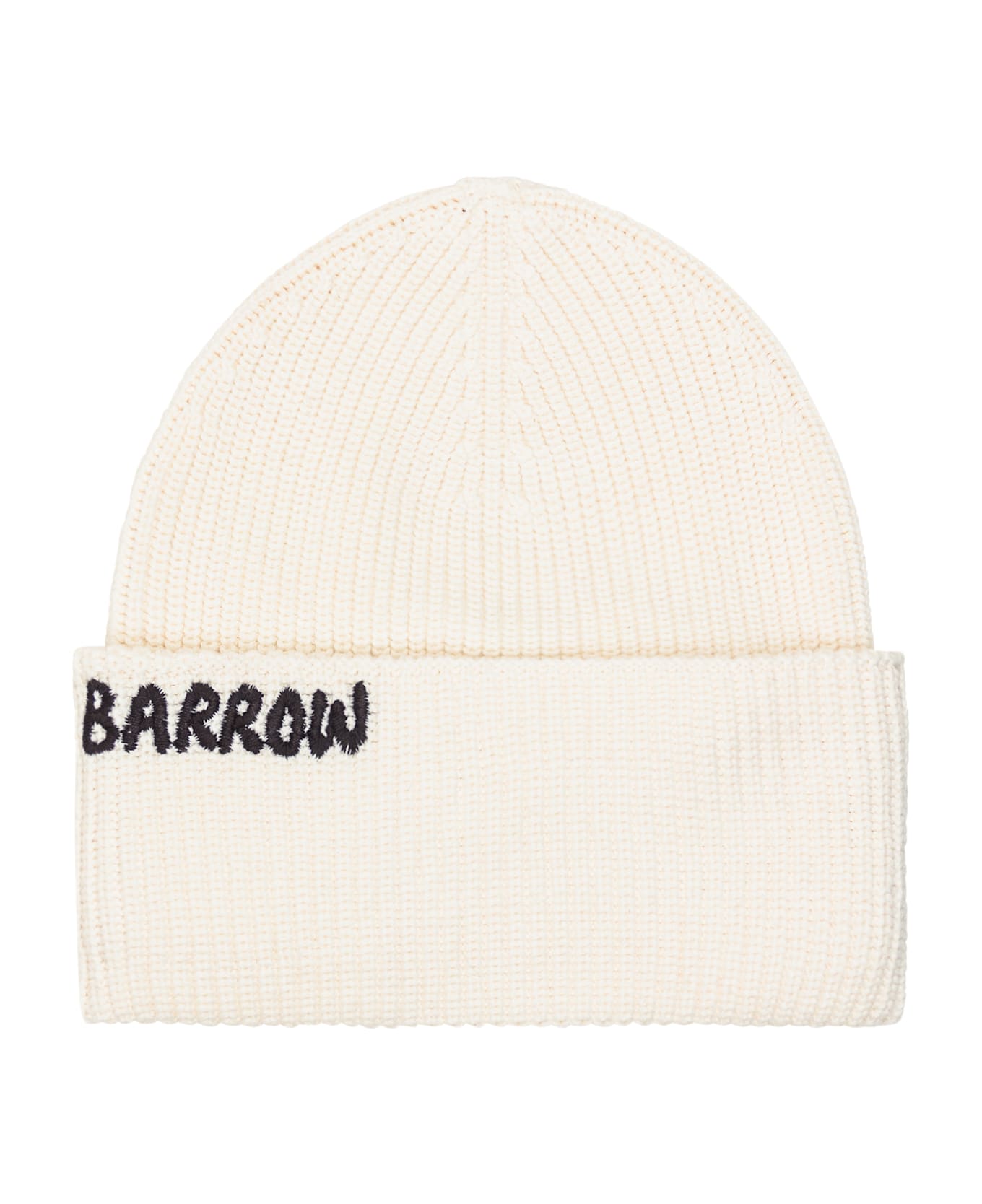 White wool and cotton blend beanie. Woven work. Embroidered Barrow logo on the front.
