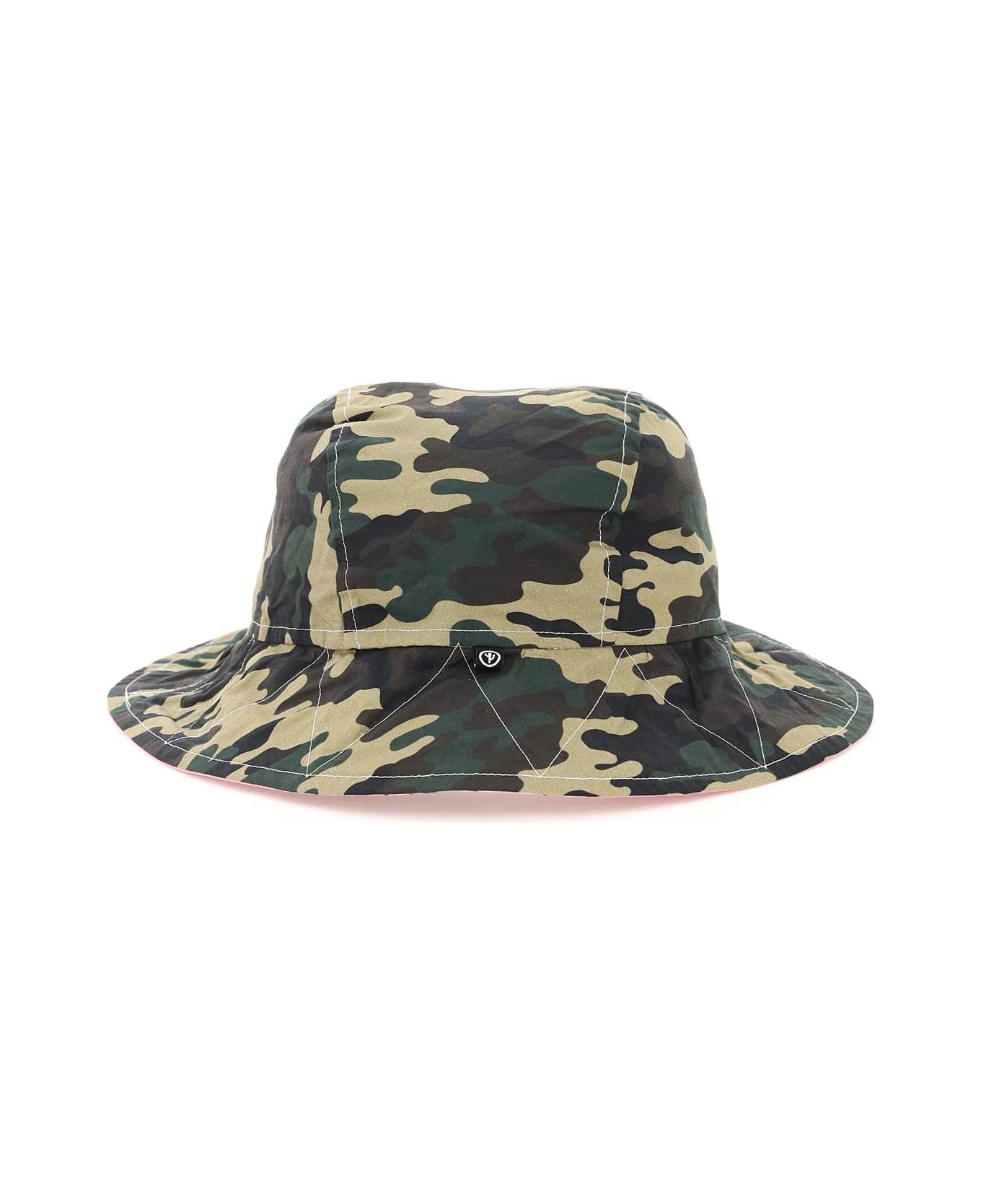 Bob double-sided bucket hat by Arizona Love, handmade, in bandana-printed and camouflage cotton fabric. Fabric logo tag inside.