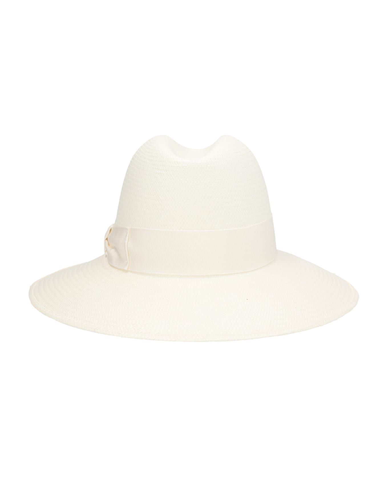 'Claudette Panama Fine' straw hat with tonal grosgrain band and side bow. Composition: 100% straw