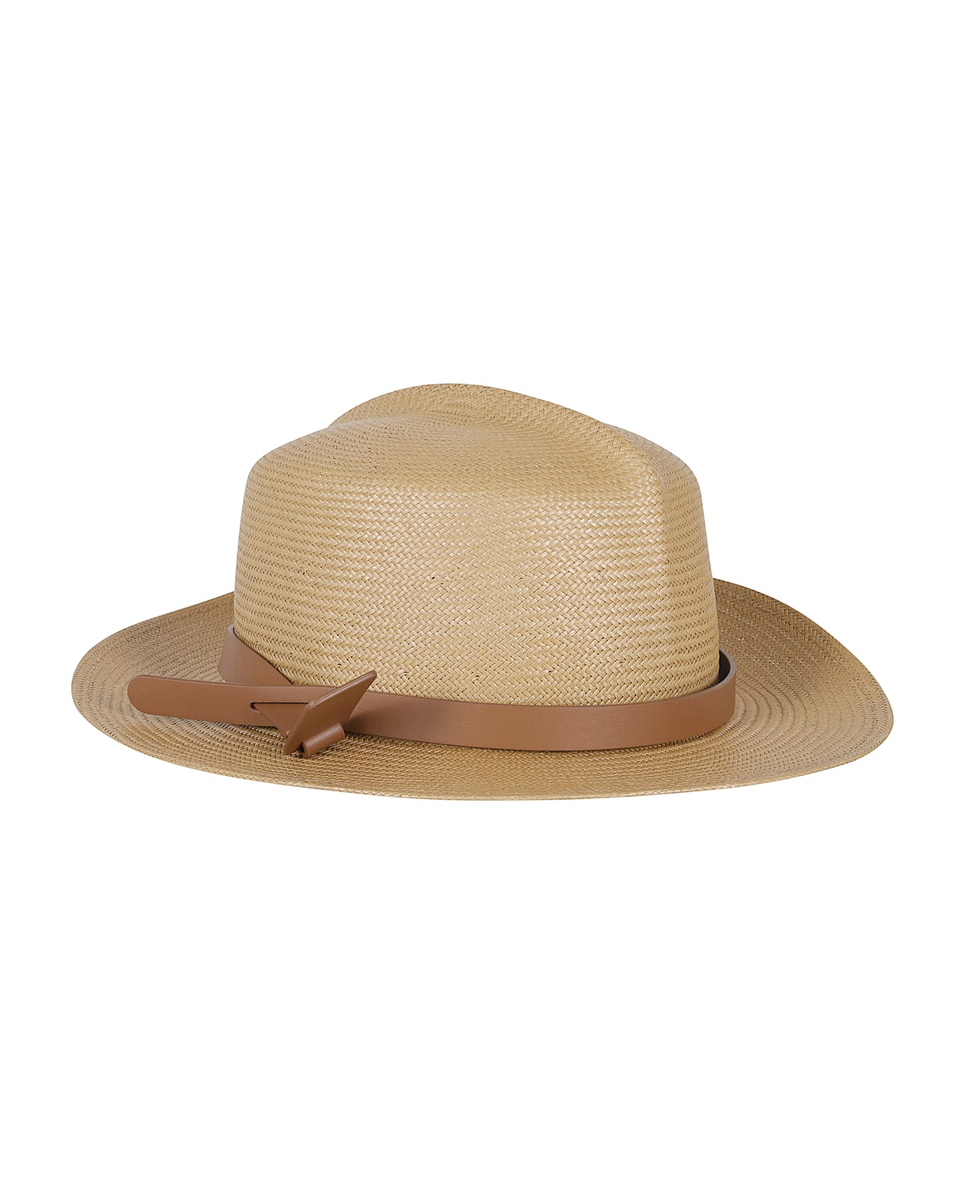 Fan hat - Weekend Max Mara - Natural color - Made of woven straw - Panama pattern - Woven leather strap