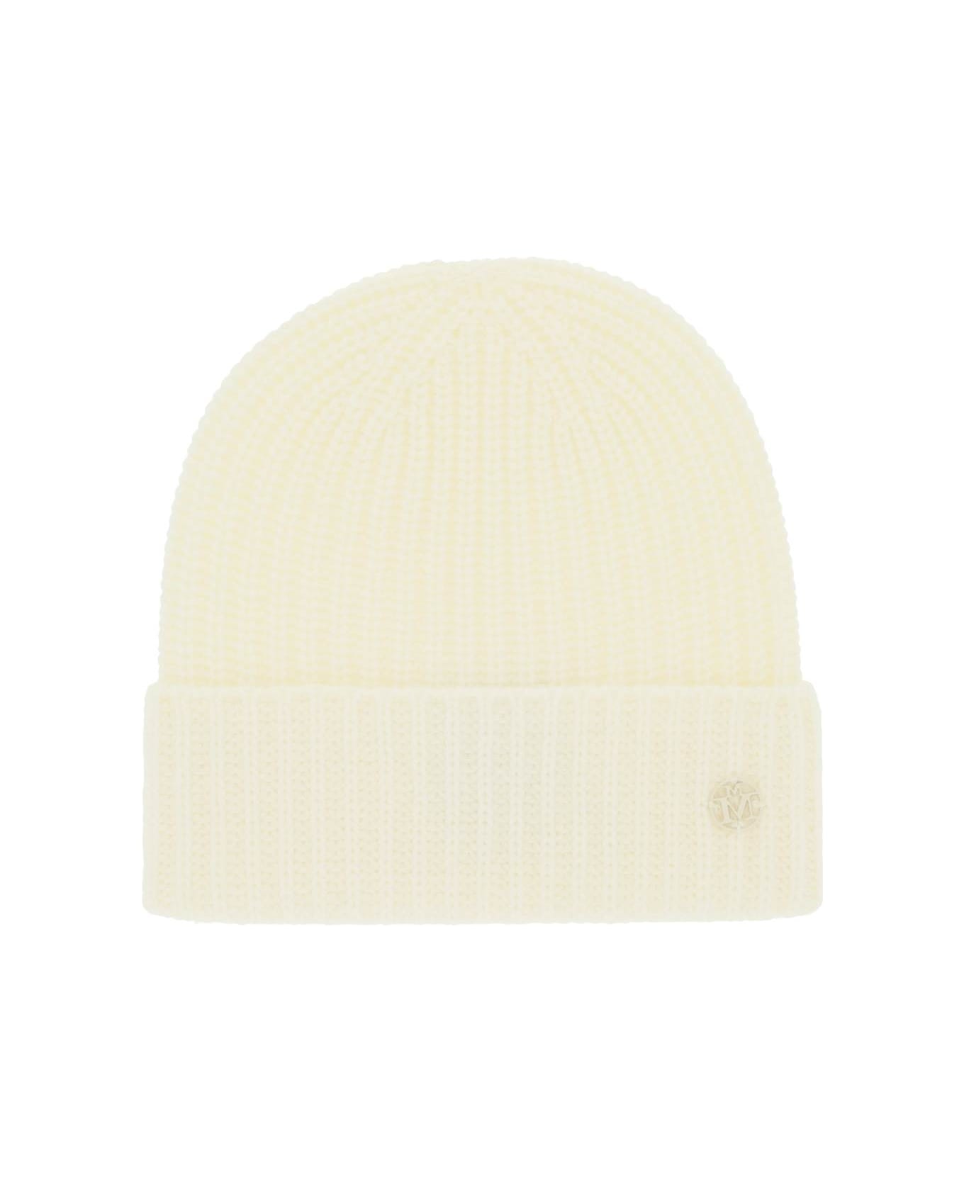 Gigi beanie hat from Maison Michel made of ribbed cashmere with tone-on-tone metal logo applied to the lapel. Unlined interior. One size.