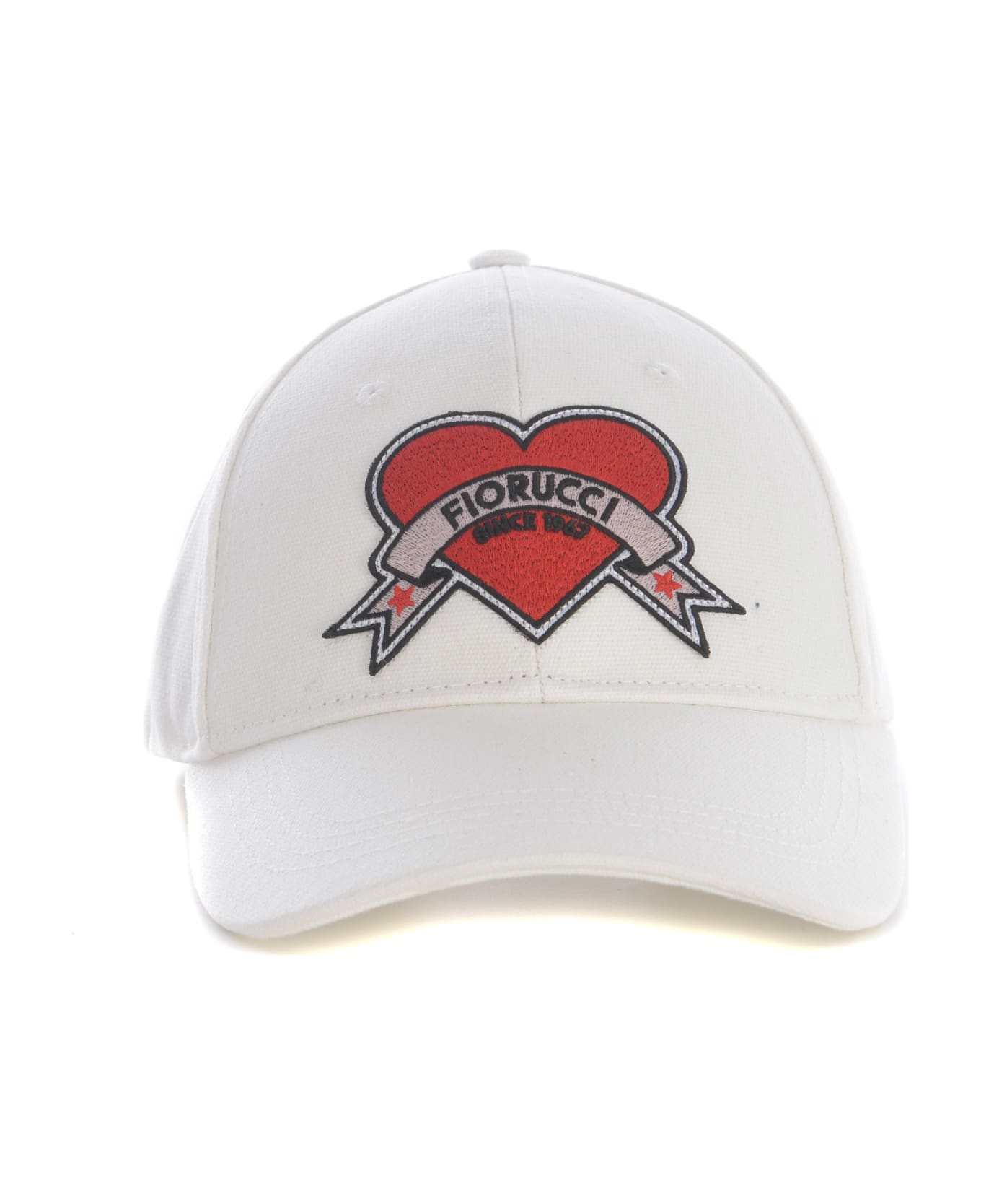 Hat Fiorucci made of White cotton. "Heart" patch written "Fiorucci" on the front. Curved visor. Adjustable back closure at the back. 100% Cotton Made in Italy