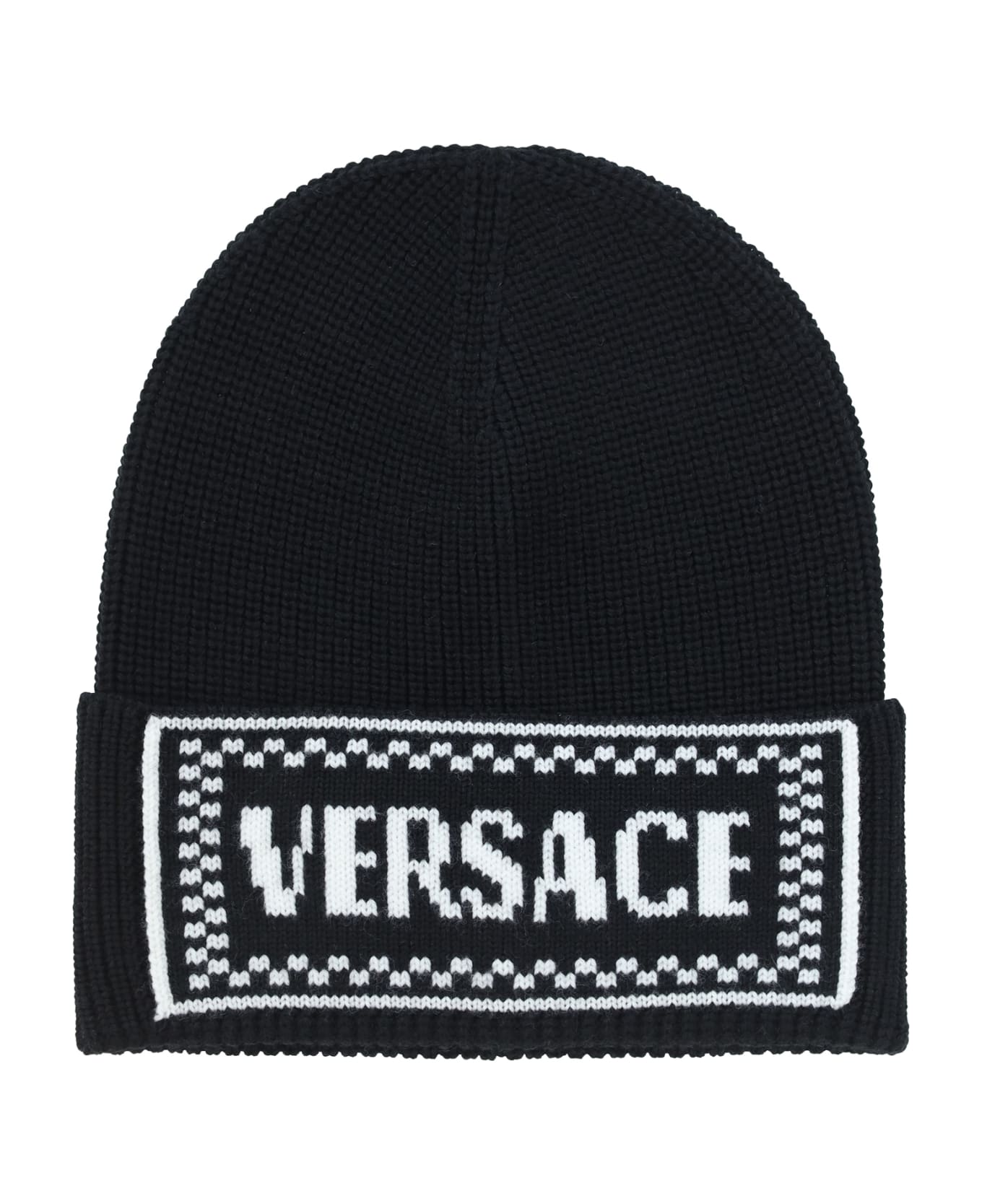 Fleece wool hat by versace, knit design, iconic brand monogram embroidered in contrast on the front. Composition: 100% % Fleece Wool