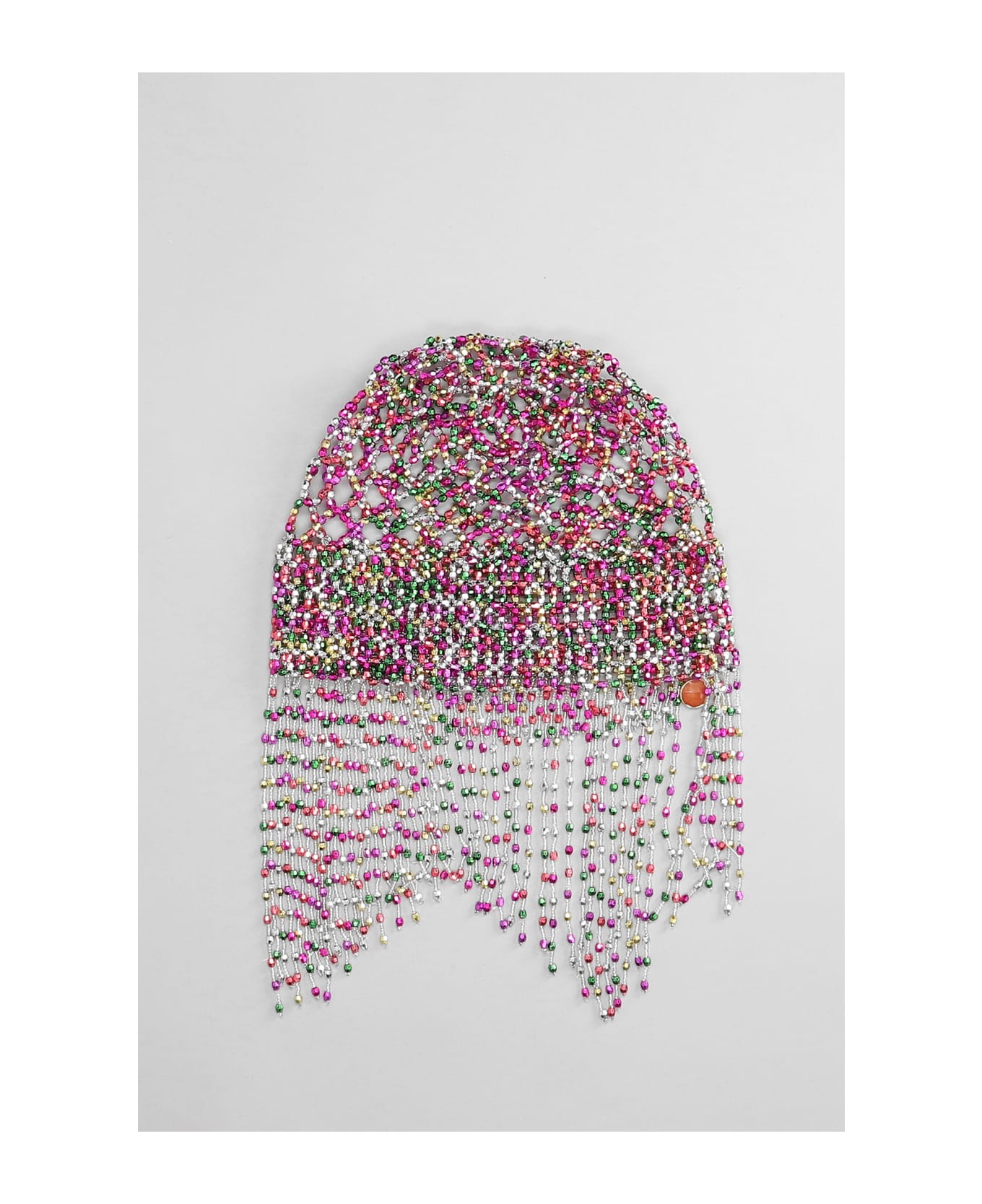 Hats in multicolor metal alloy, crochet style, bead embellished, multiple hanging pendants, Made in Hong Kong