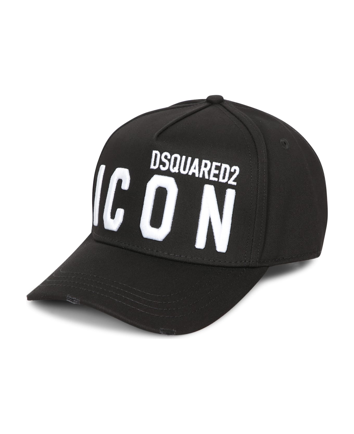 An iconic black Dsquared2 cap enhanced with the distinctive white ICON logo on the front, perfect for a casual and sporty look.