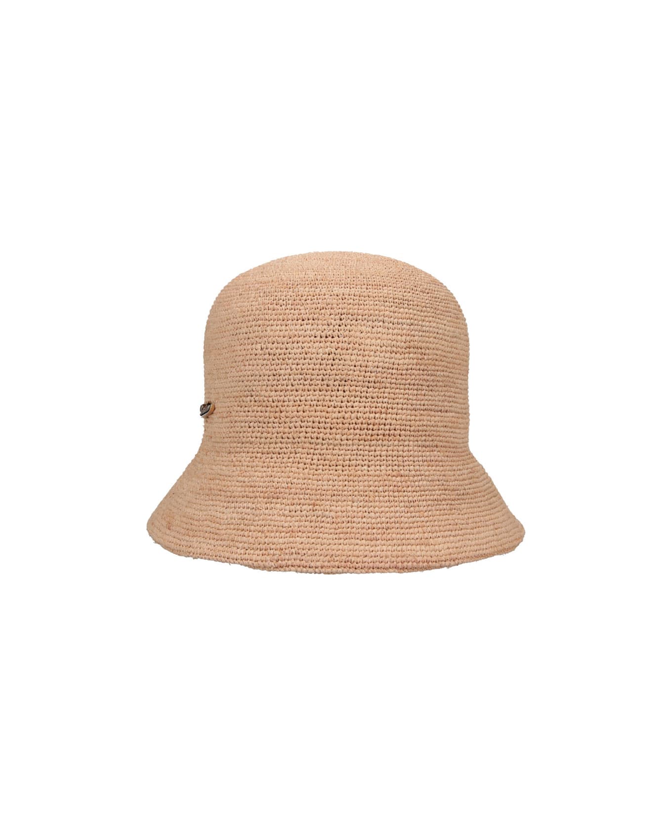 Straw Hat "Koko Cloche" Borsalino, beige, visor, side golden metal logo. Composition: 100% Straw