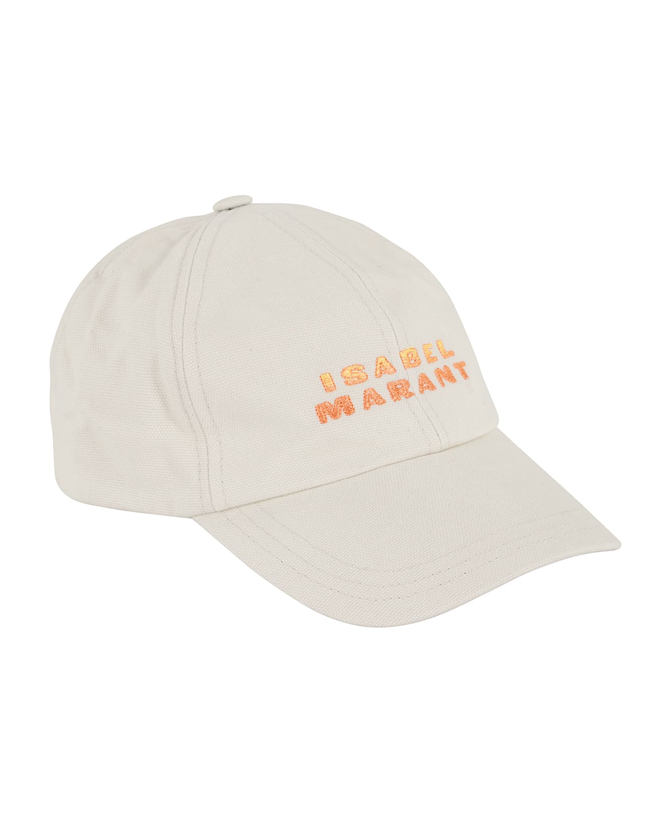 Tyron hat - Isabel Marant - Ecru color - Baseball model - Embroidered orange front logo - Adjustable back closure