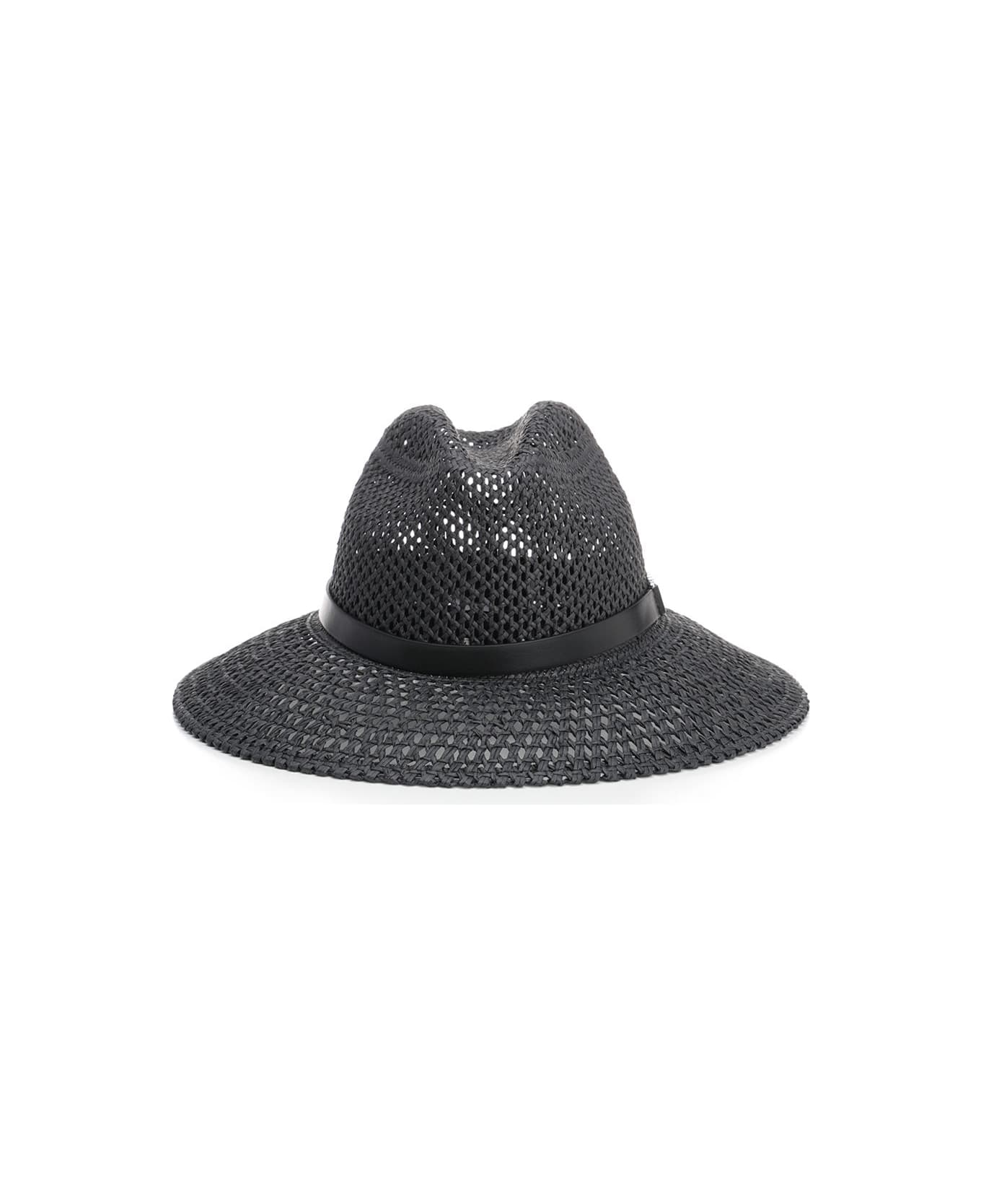 All-over perforated paper hat by MAX MARA. Wide brim with leather band in the same shades and metal M Monogram detail.