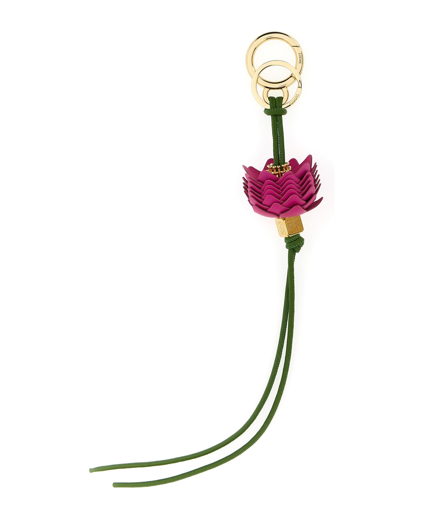 Paula's Ibiza 'Flower Dice' capsule keyring in flower-shaped leather, gold metal details.