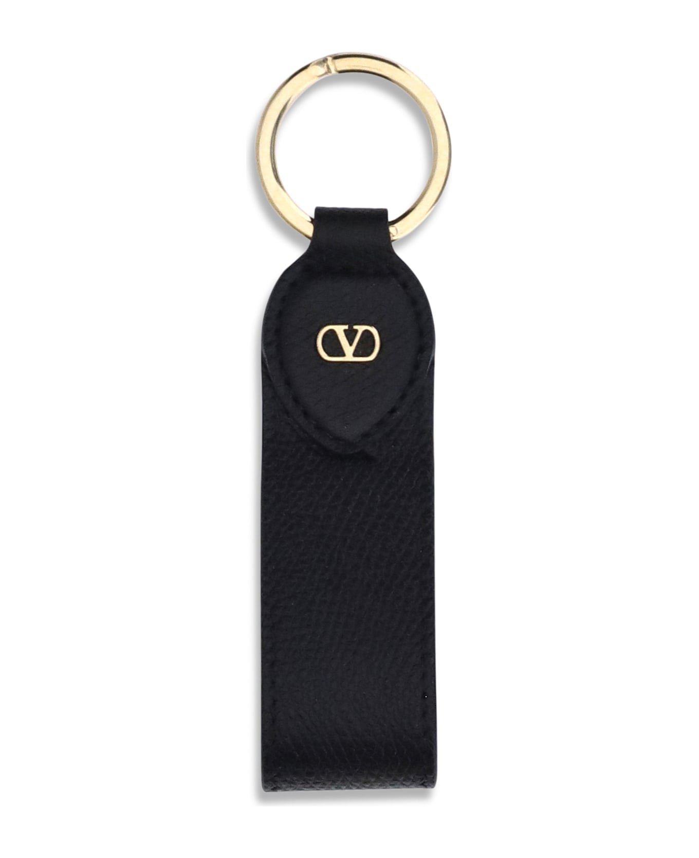 The valentino garavani vlogo keyring is a refined leather accessory embellished with the iconic vlogo detail in a gold finish. elegant and minimal, it adds a touch of style to your keys or purse.