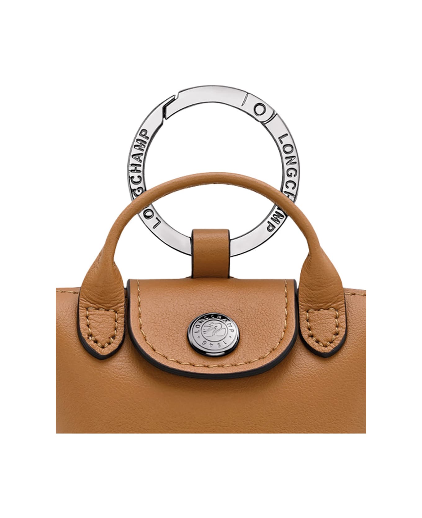 'le Pliage Xtra' Brown Keyring With Logo Lettering In Leather Woman