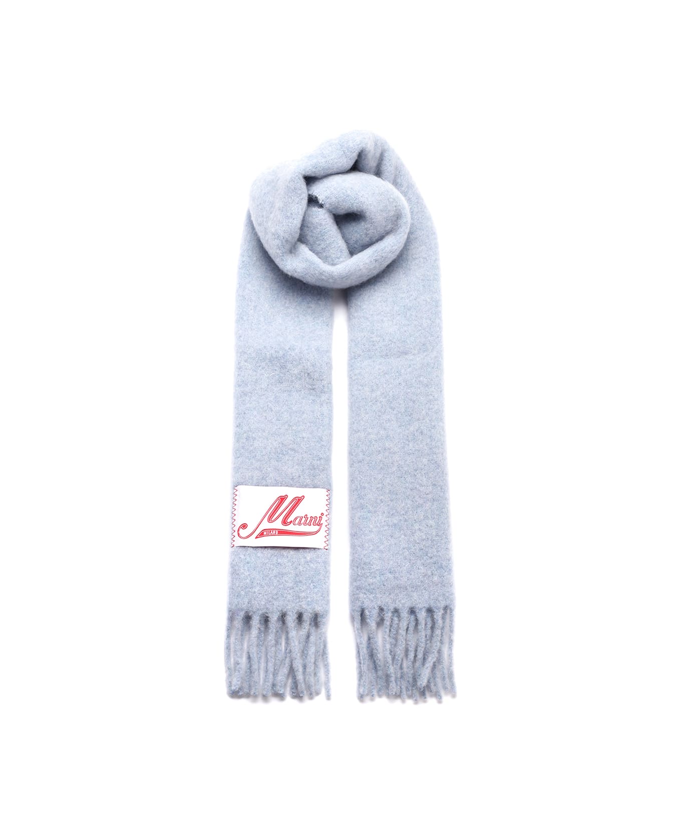 Long scarf in light blue alpaca wool from Marni with logo label and fringed hems. Composition: 80% Alpaca, 20% Polyamide