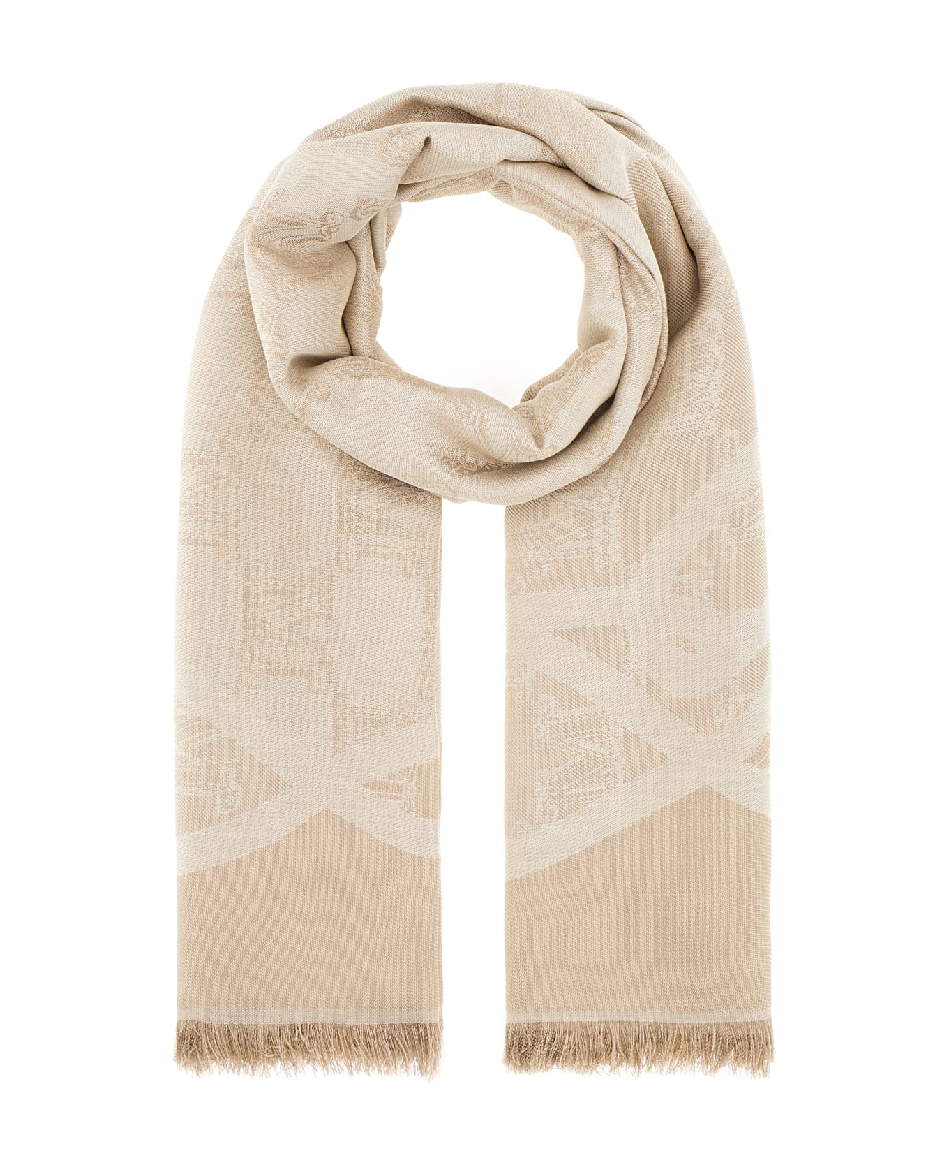 Scarf realized in pure silk characterized by logoed embroidery on the entire surface. -Fringed ends