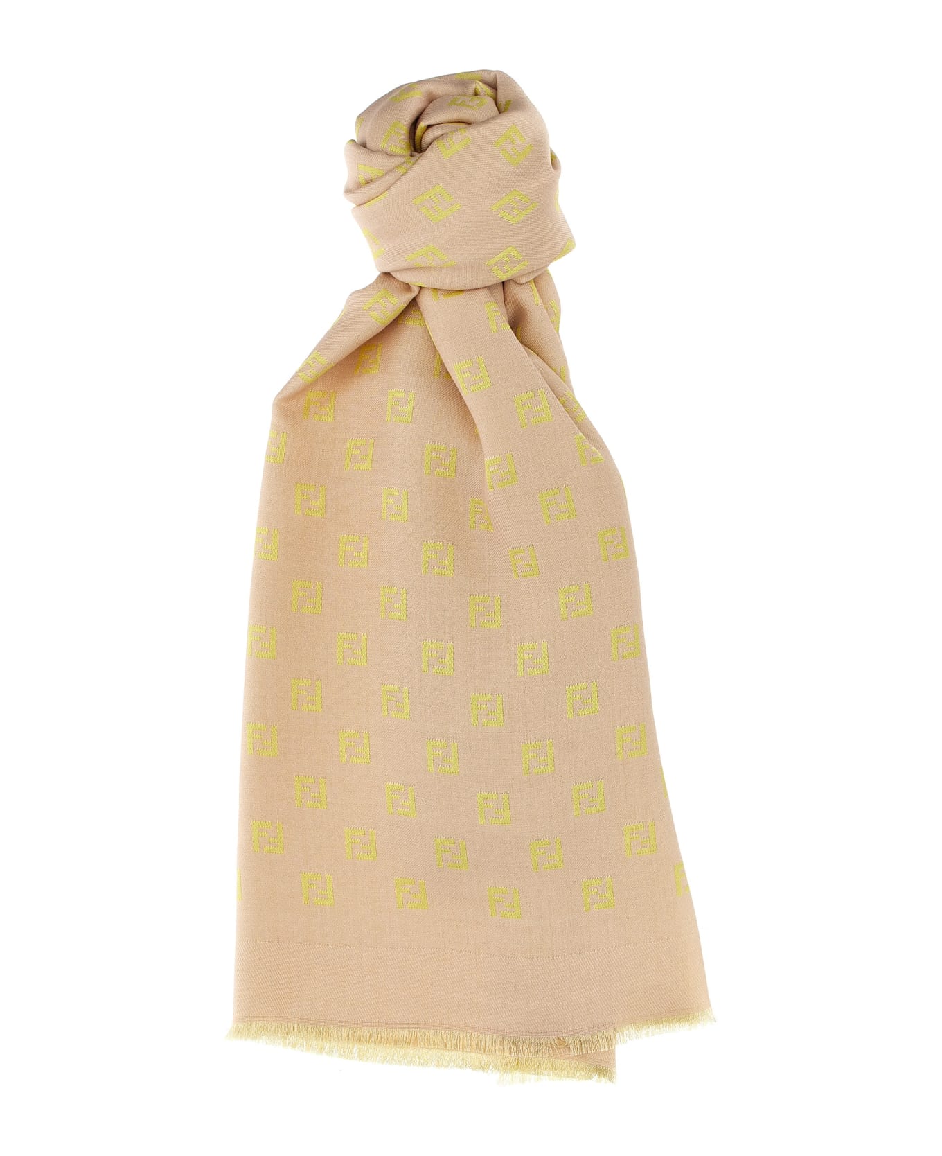 Silk and wool shawl with all-over 'FF' logo and fringed edges. Composition: 64% silk, 36% wool