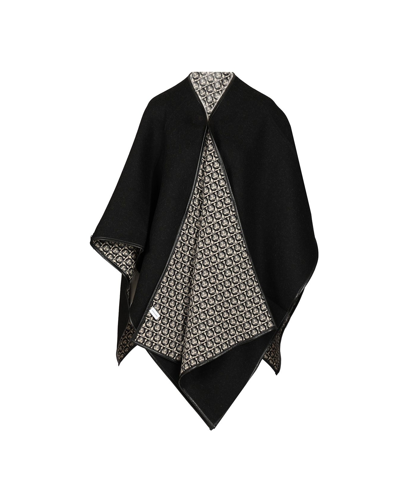 "Gancini" wool cape by Ferragamo, with Gancini pattern and leather details Composition: 95%WOOL+5%CALF LEATHER # # #
