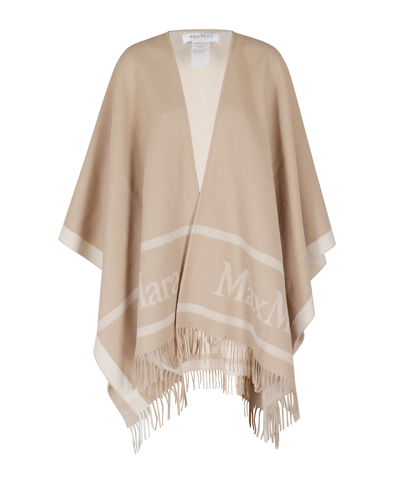 Hilde Poncho - Max Mara - Camel color - Yarn-dyed wool fabric - Max Mara jacquard pattern on the bottom - Frayed hem - Size: 180 x 130 cm