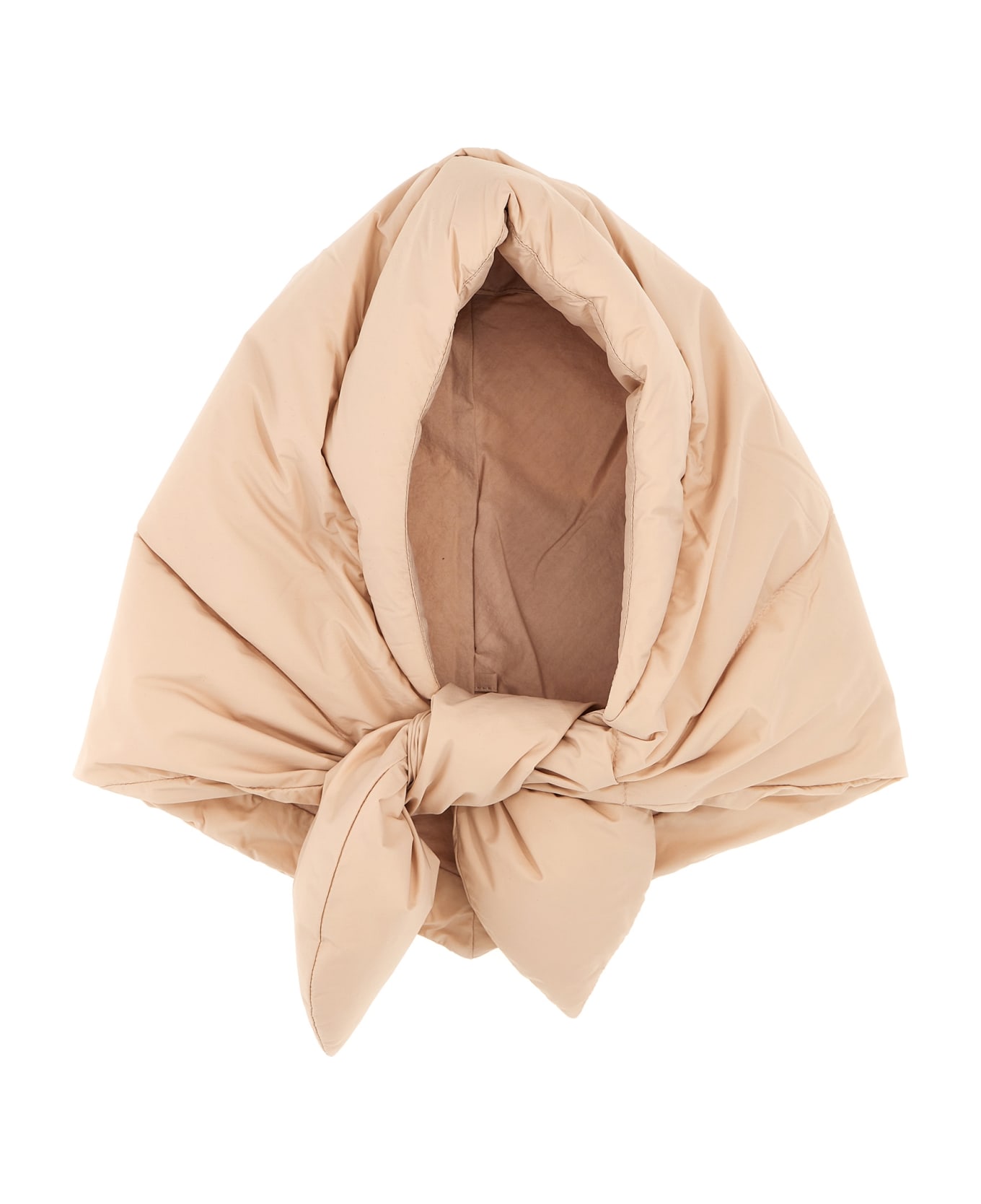 'Hustka' hood in padded nylon with knotted flaps.