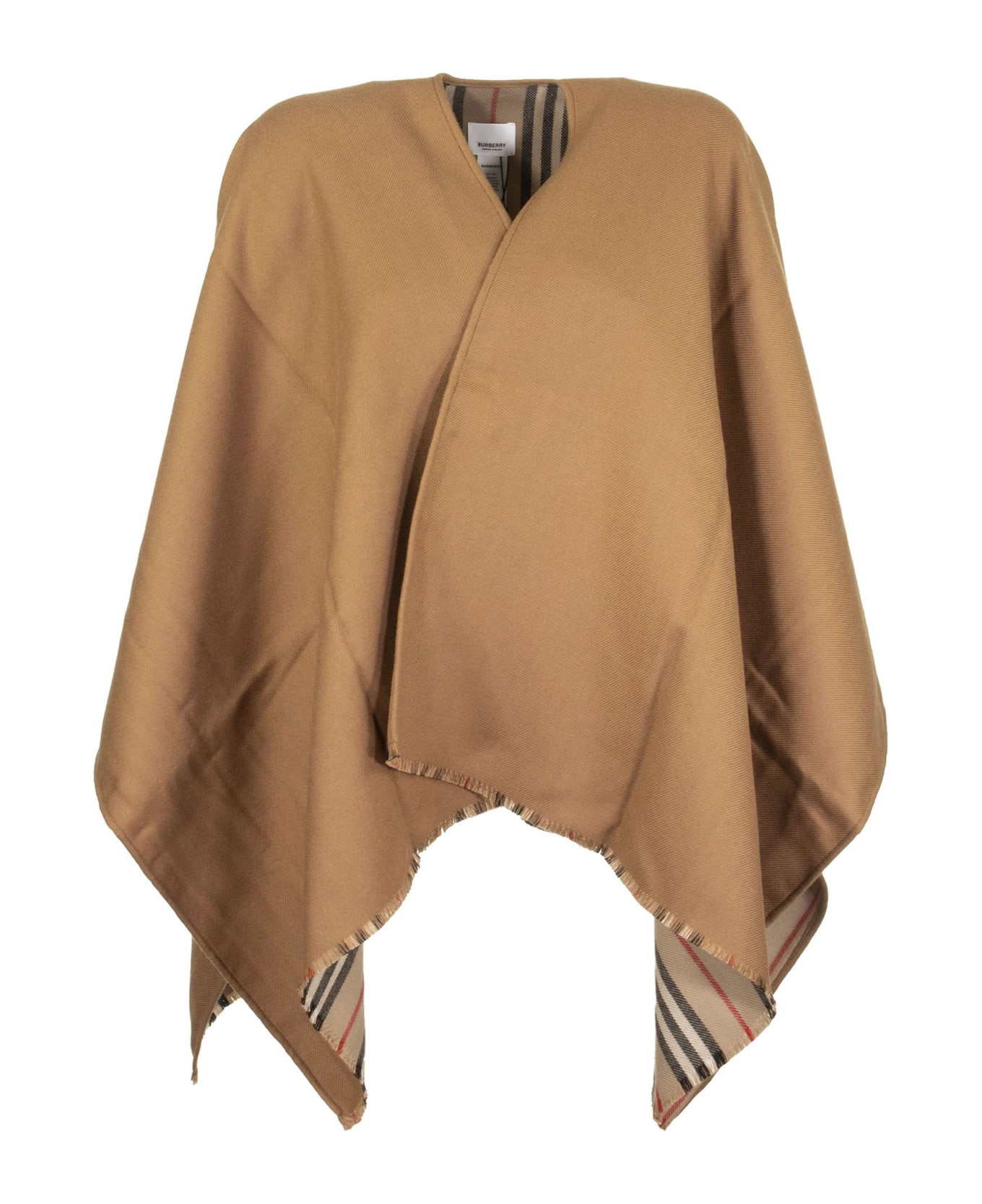 An Italian-made wool cape, highlighted with our Icon stripe on the reverse. 8015654 A7139 ICON STRIPE WOOL CAPE IN FLAXSEED Composition: 100 % WOOL