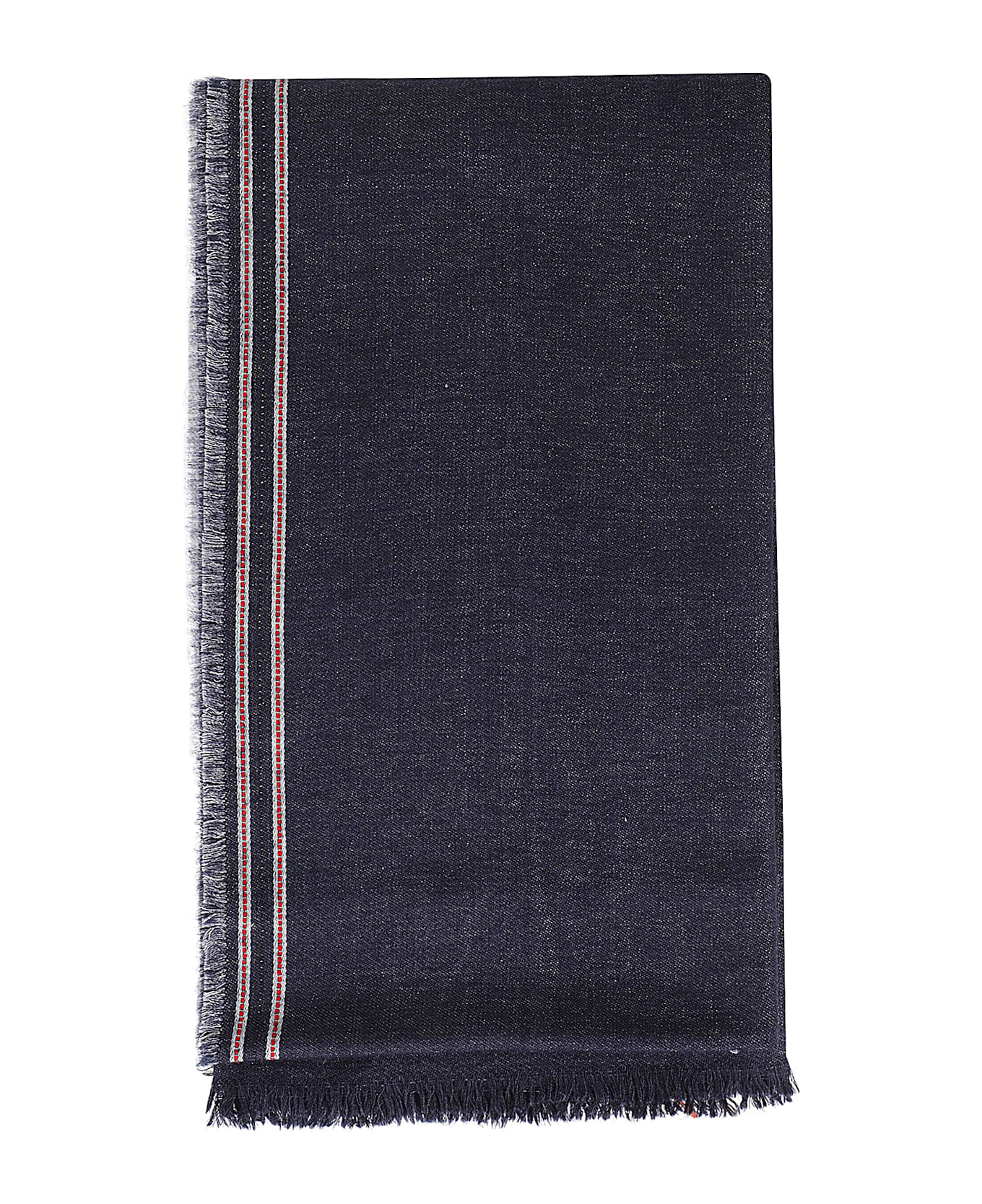 Jeans Scarf - Faliero Sarti - Blue color - Wool, cashmere and silk denim effect fabric - Frayed profiles with red detail - Size: 75 cm x 185 cm