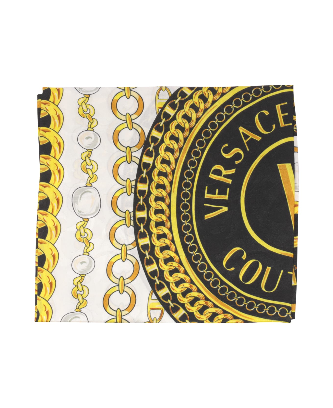Versace Jeans Couture white, gold and black Logo foulard, patterned